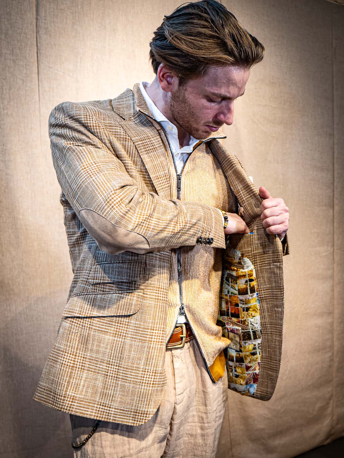 "Blazer Lex Beige Glen Check"