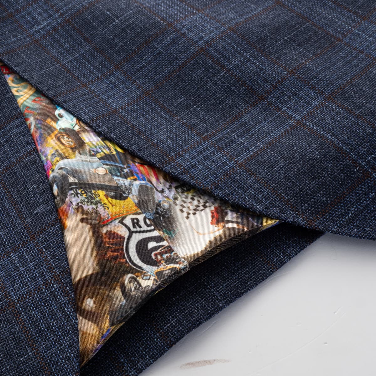 - Finely textured fabric with subtle check pattern