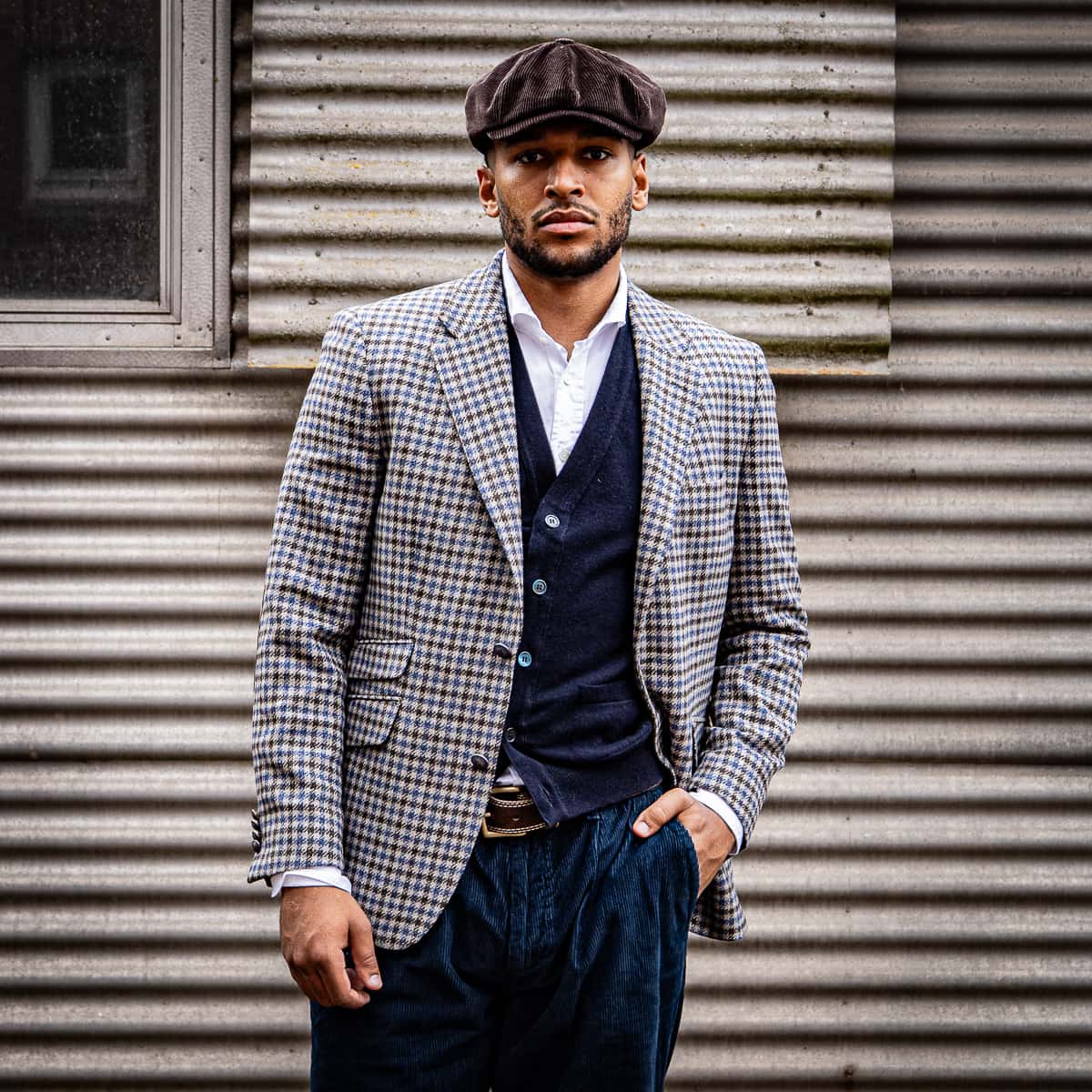 "Blazer Houndstooth Blue-Brown"