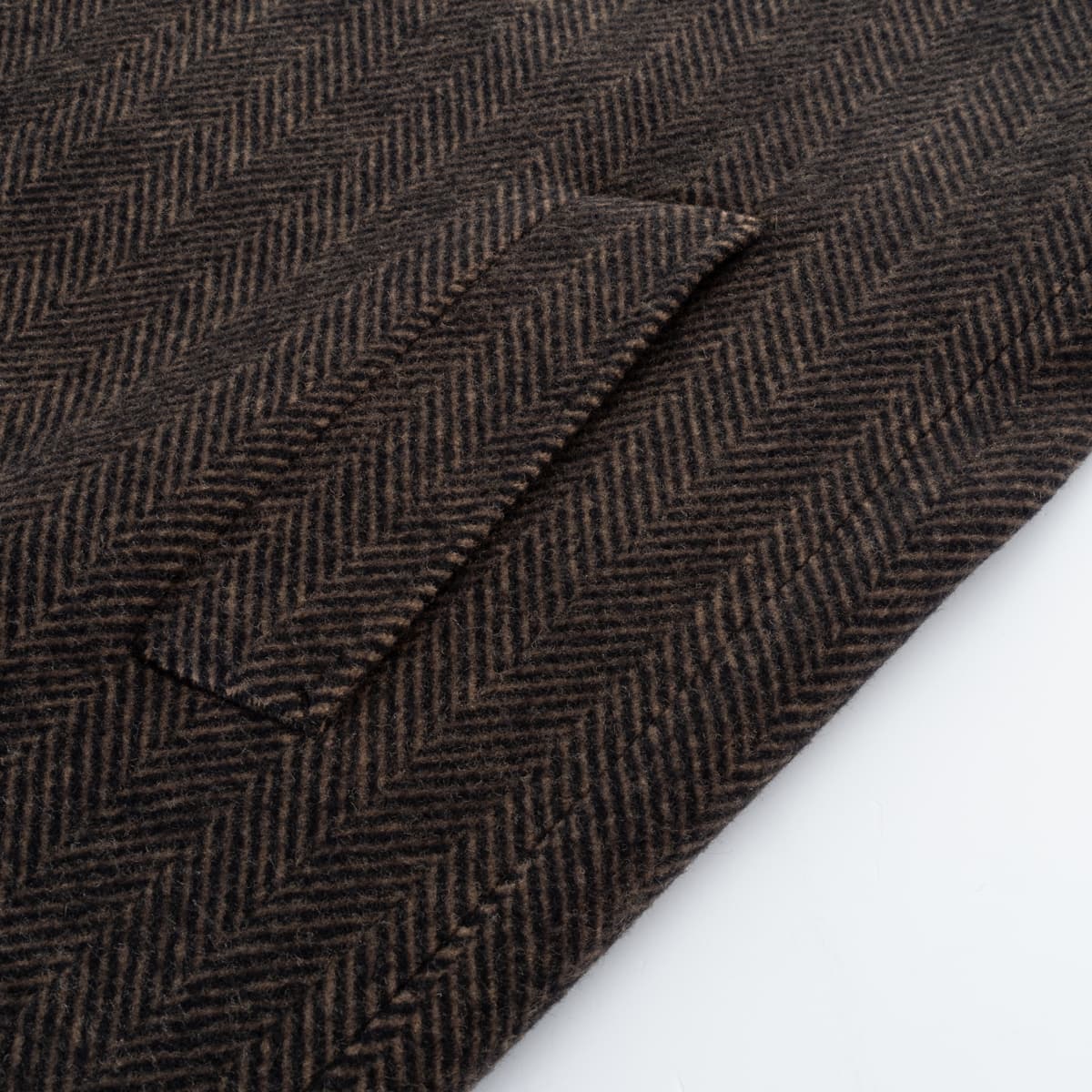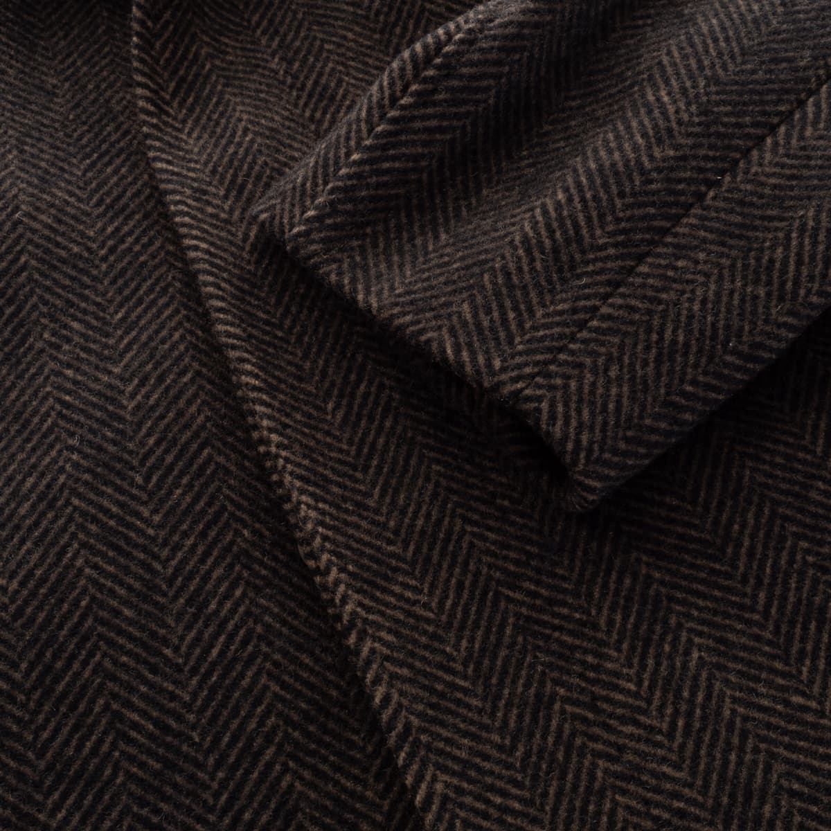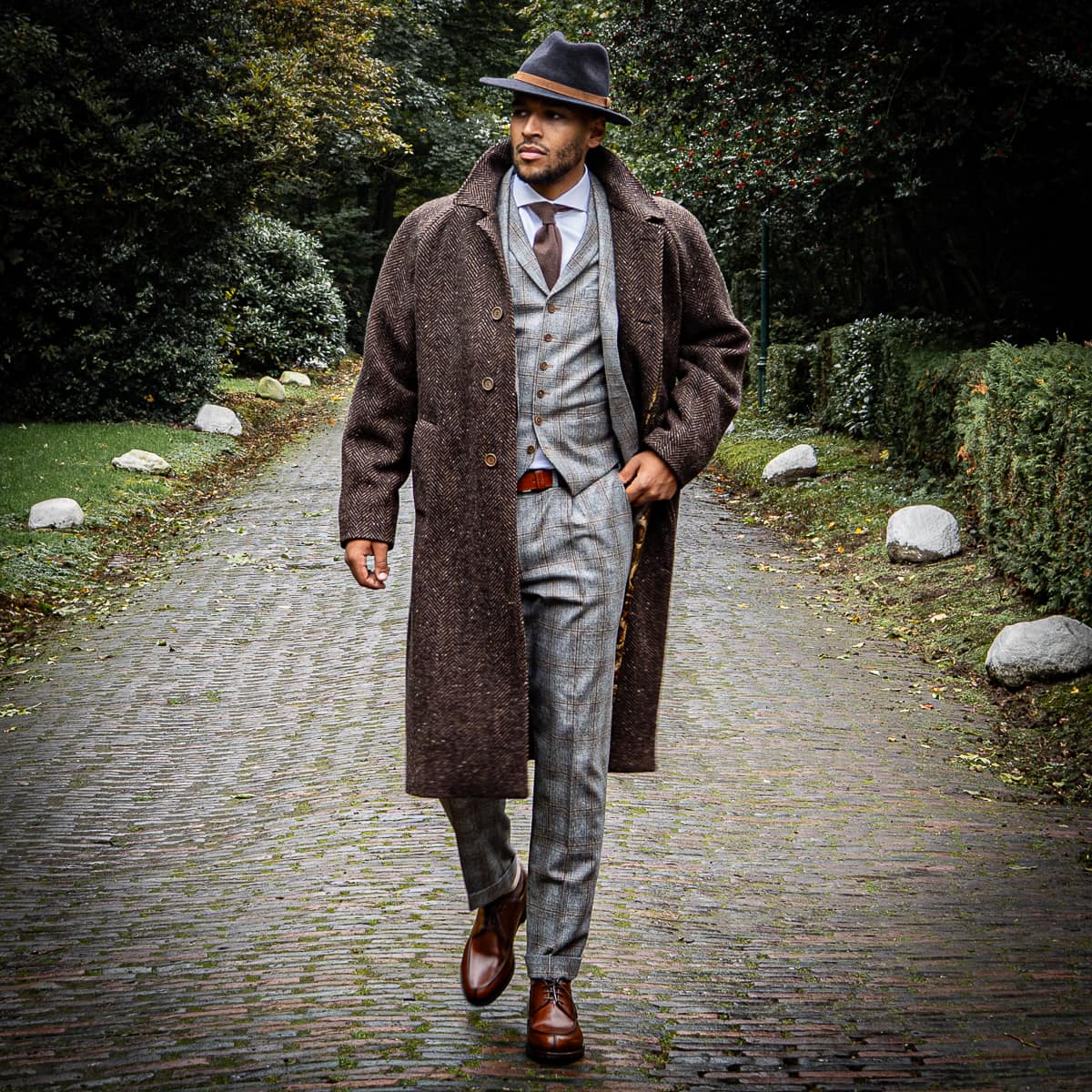 Elegant men’s coat by 1973 made from mid-weight herringbone wool (480 g/m²), crafted from 100 % wool. The classic brown/anthracite herringbone pattern lends the coat a rich texture and refined character. With a straight cut and raglan sleeves, it combines traditional tailoring with everyday comfort. The highlight is the humorous animal-portrait lining – a signature feature of the 1973 label. A coat with personality that bridges timeless craftsmanship and playful design.