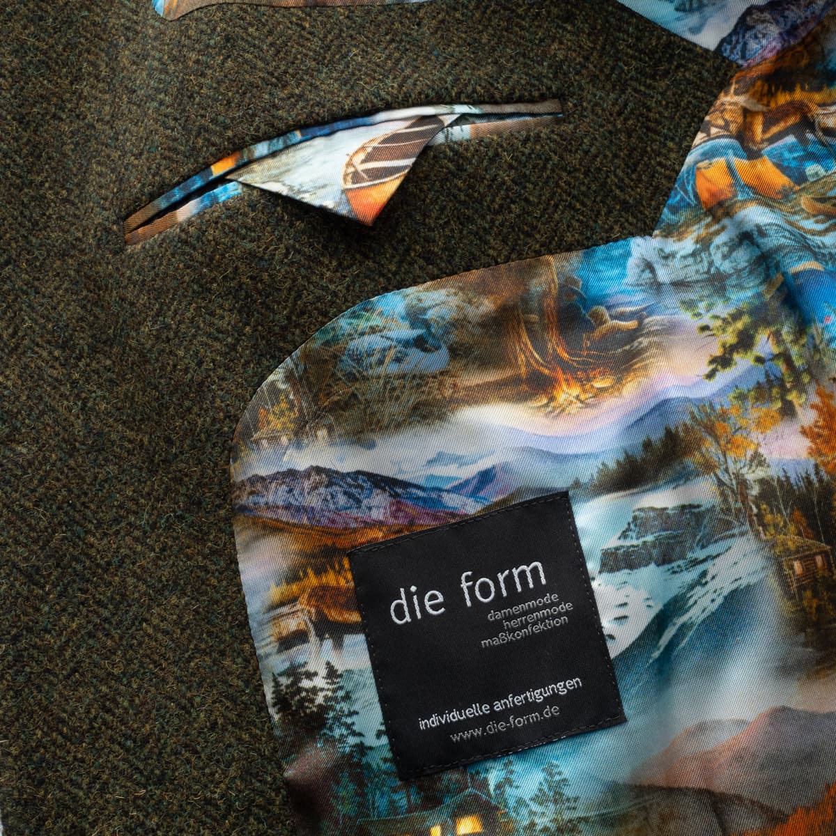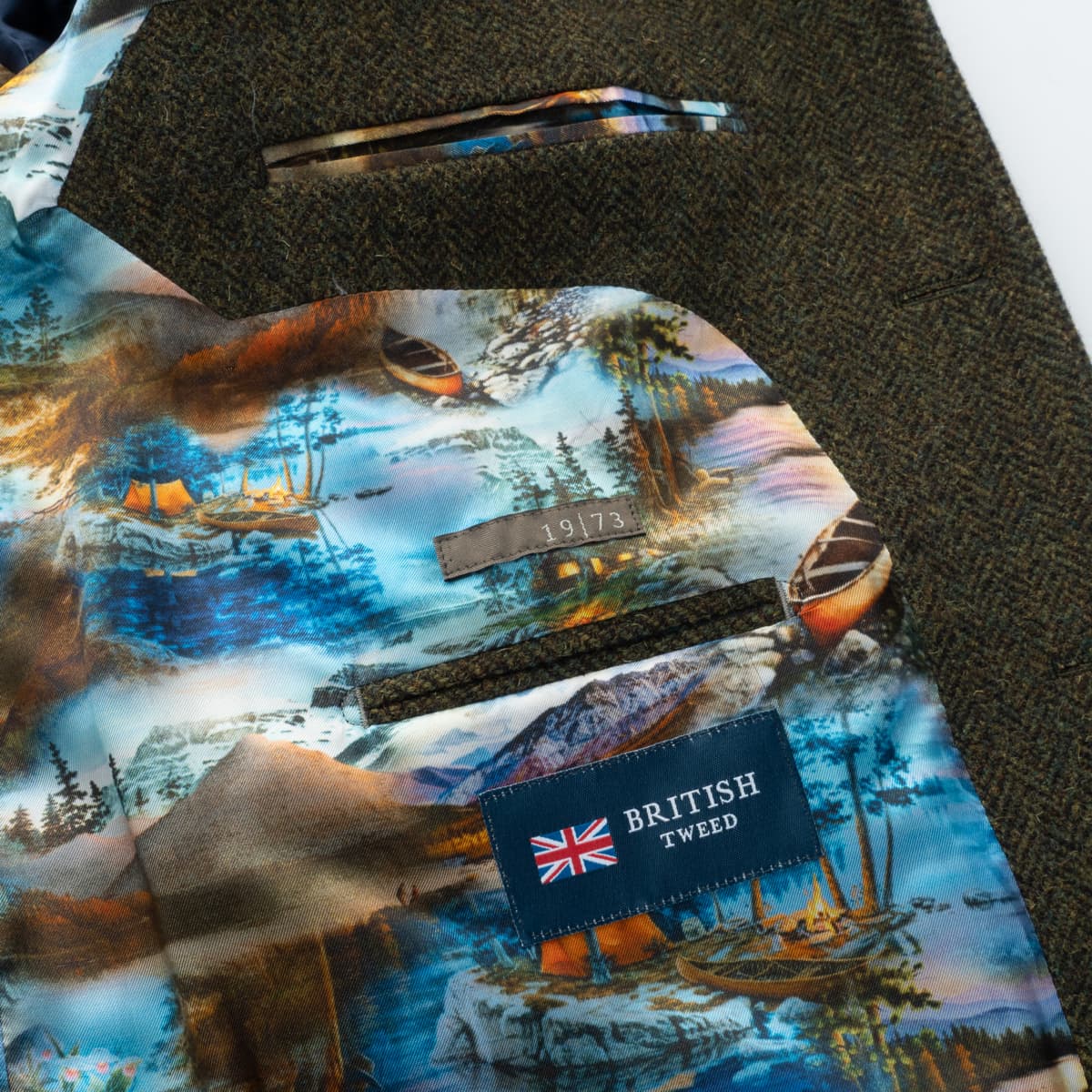 - Tweed fabric woven in the UK