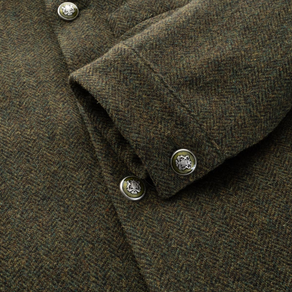 - Color: Olive green with herringbone pattern