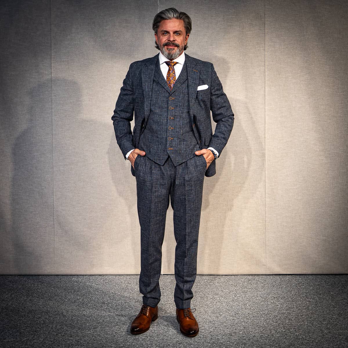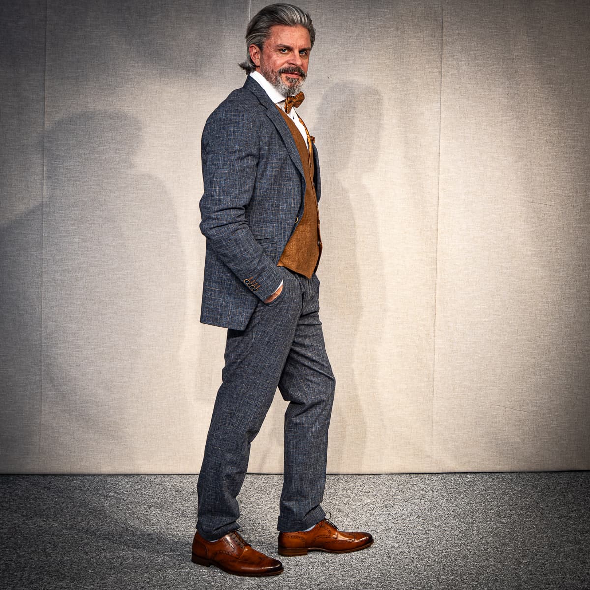 Pair it with the matching blazer and waistcoat to complete the look – available in our online shop.