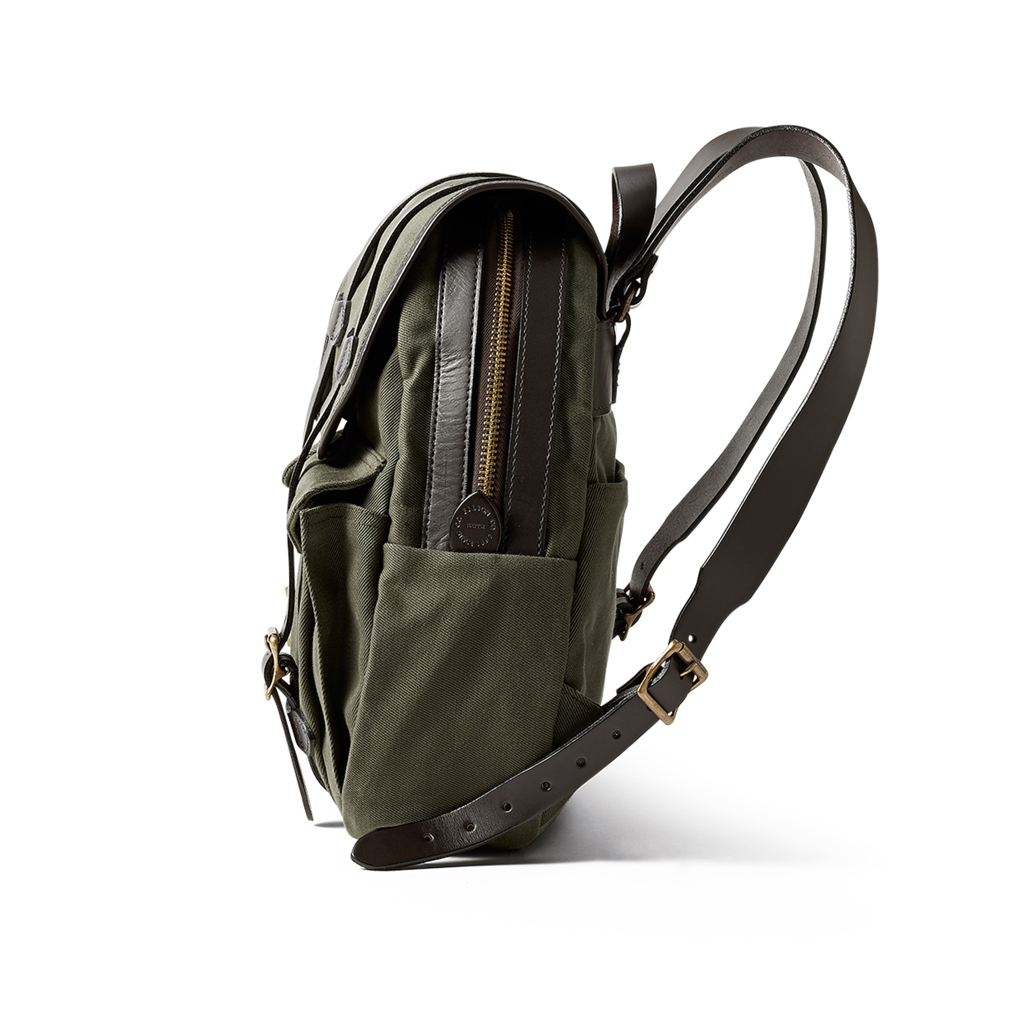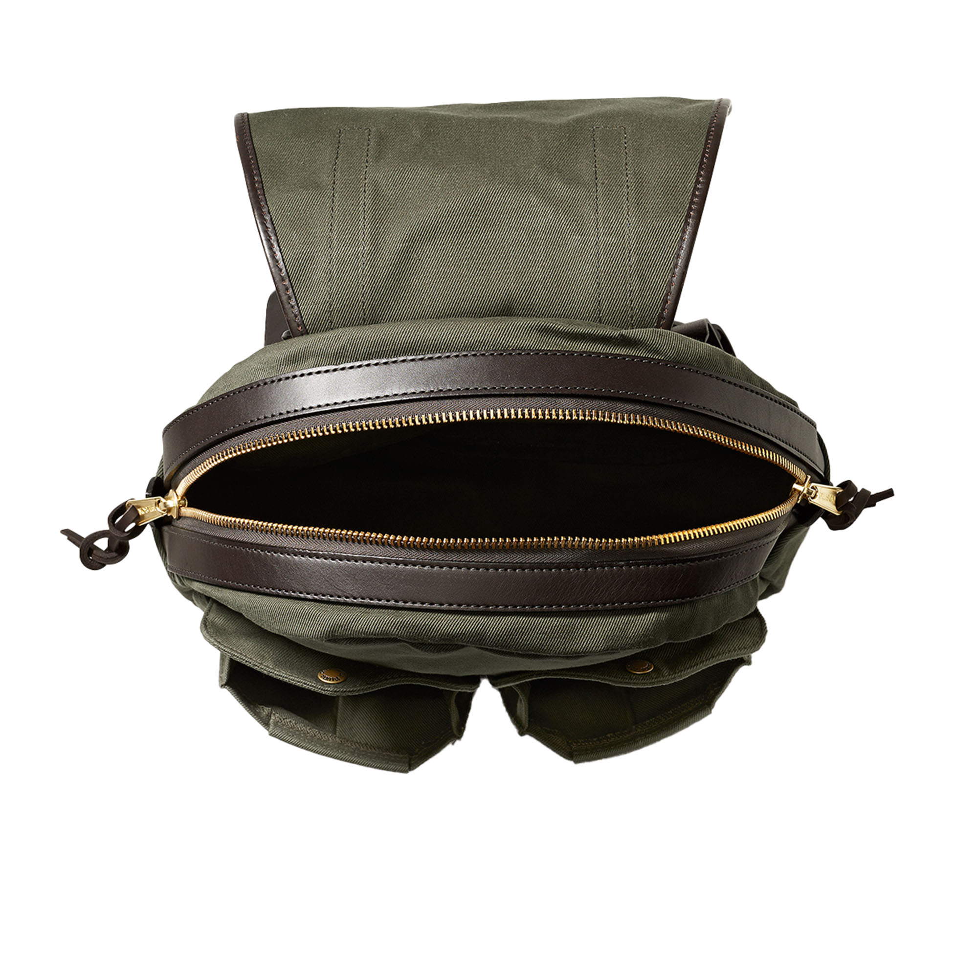 Luggage from Filson in Seattle withstands the toughest demands. Already in the last great gold rush at Klondike at the end of the 19th century, Filson products were among the favourites of the gold prospectors of the time due to their exceptional robustness. The luggage consists of a particularly heavy, densely woven cotton twill (746 g/m²), which has been made water-resistant by treatment with a special paraffin wax. Zippers and other metal parts are made of corrosion-resistant brass, all leather applications are made of particularly strong vegetable-tanned cowhide leather. The bags are still manufactured in Filson's factory in Seattle. For cleaning, wipe or brush with a damp sponge. Do not wash, do not dry clean. The zippers may be a little difficult to move at first, but this will wear off over time; the saddle leather also becomes softer with use.
