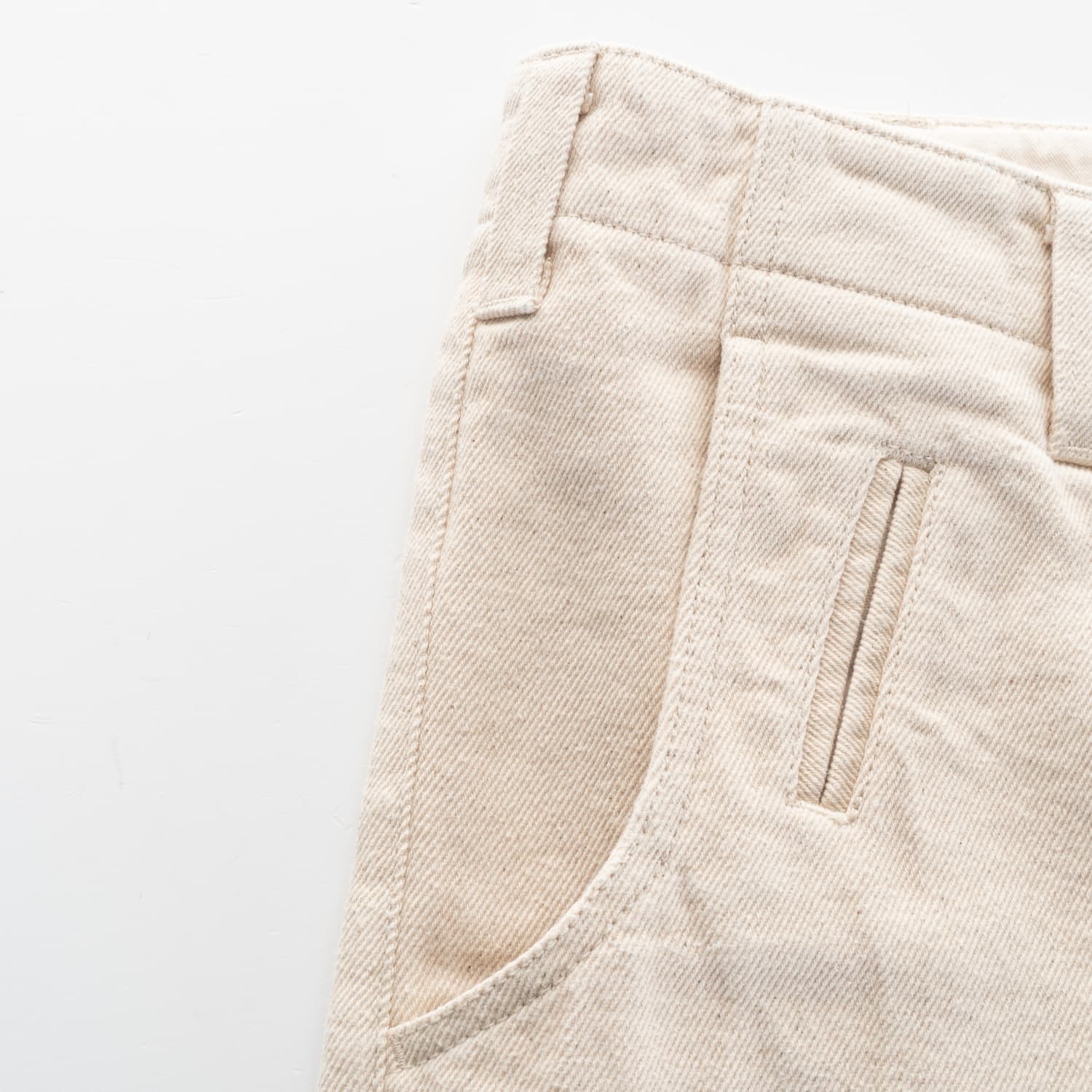 Army pants in 10 oz 100% cotton ecru from Japan.
