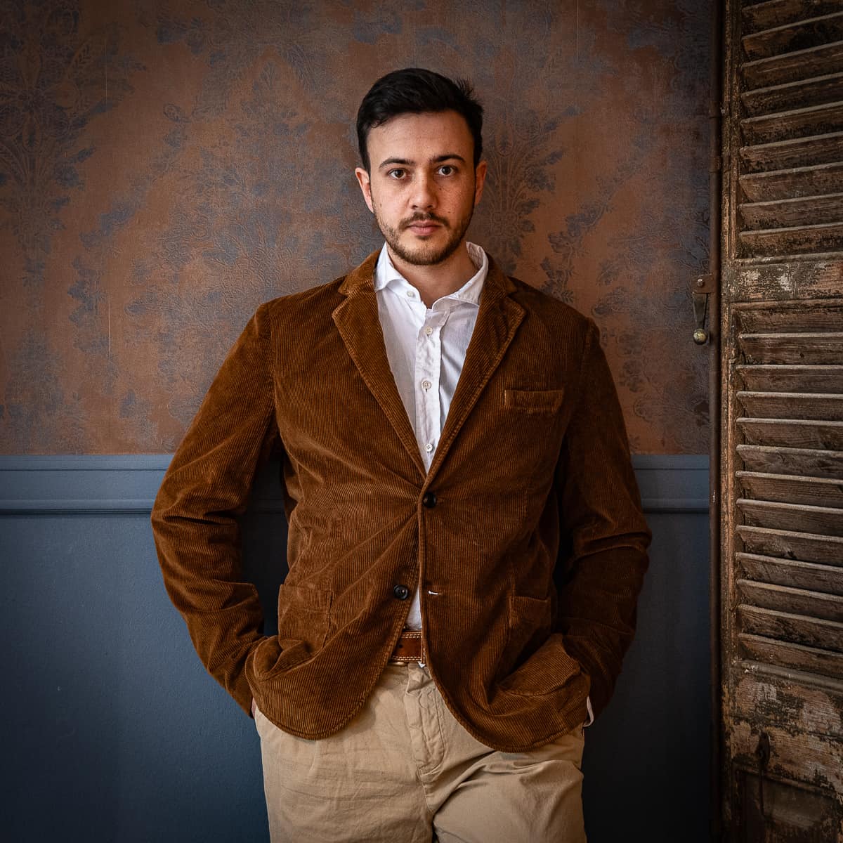 Elegant corduroy blazer “DaVinci” by Mason's – made from a soft cotton blend with stretch. This modern blazer merges classic corduroy with a comfortable fit. The mix of cotton, lyocell and elastane ensures a soft touch and great flexibility. Featuring a notched lapel, patch pockets and back vents, this piece is perfect for both everyday and special occasions. Made in Bulgaria. Machine washable at 30°C – ideal for those seeking comfort and style in one.