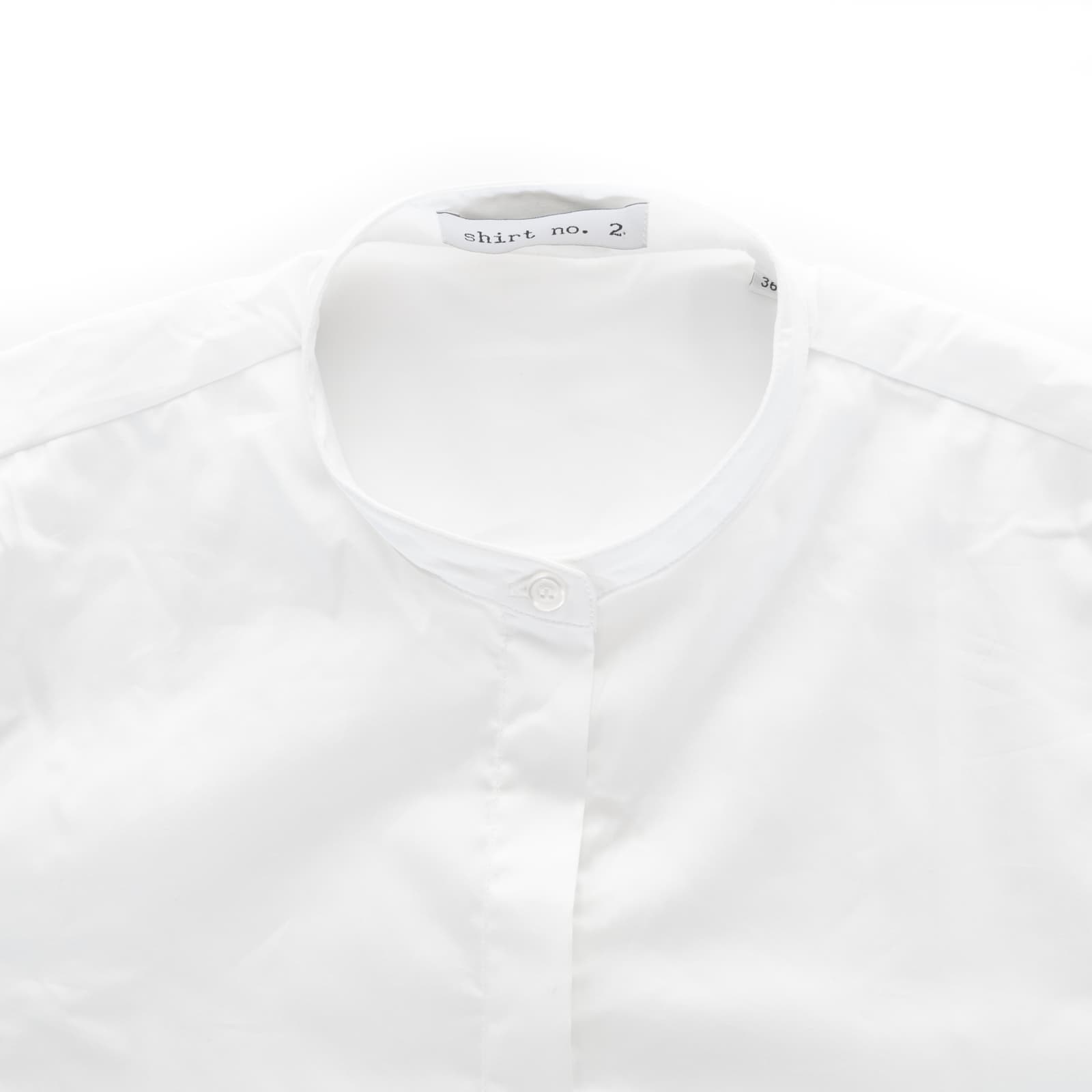 Elegant women's blouse "Shirt No. 2" in a relaxed fit, made from high-quality cotton blend fabric. The combination of 78% cotton, 17% polyamide, and 5% elastane ensures a pleasantly soft feel, shape retention, and slight elasticity. The stand-up collar and concealed button placket give the blouse a modern, clean look. Perfect for business and leisure.