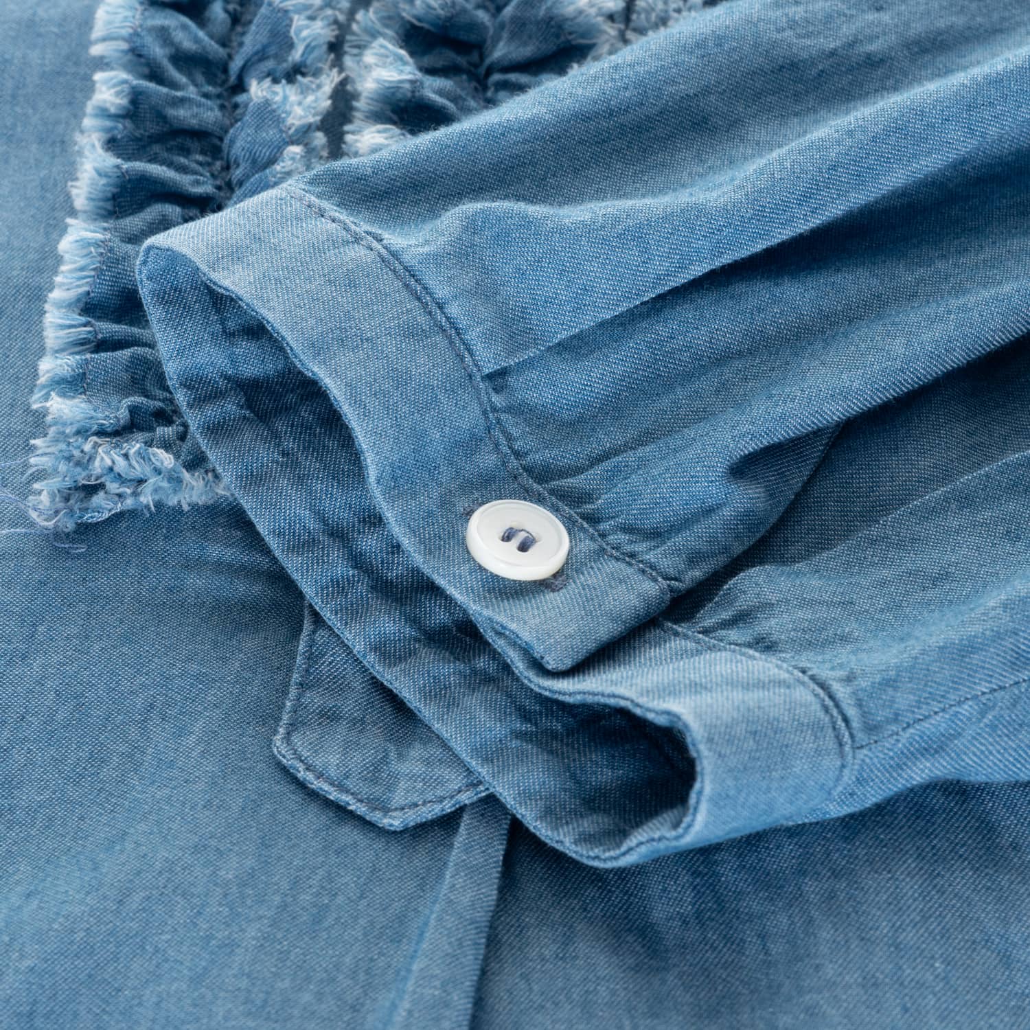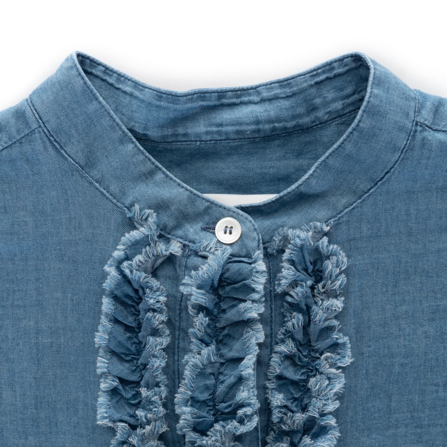 The blouse by Academia combines classic elegance with a subtle, playful touch. Made from pure cotton, it offers a lightweight feel and natural wearing comfort. A distinctive feature is the ruffle-covered button placket, adding depth and character to the design. The stand-up collar emphasizes its timeless appeal, while the extended back hem creates a modern silhouette. A refined blouse that works beautifully on its own or layered under knitwear or a blazer.