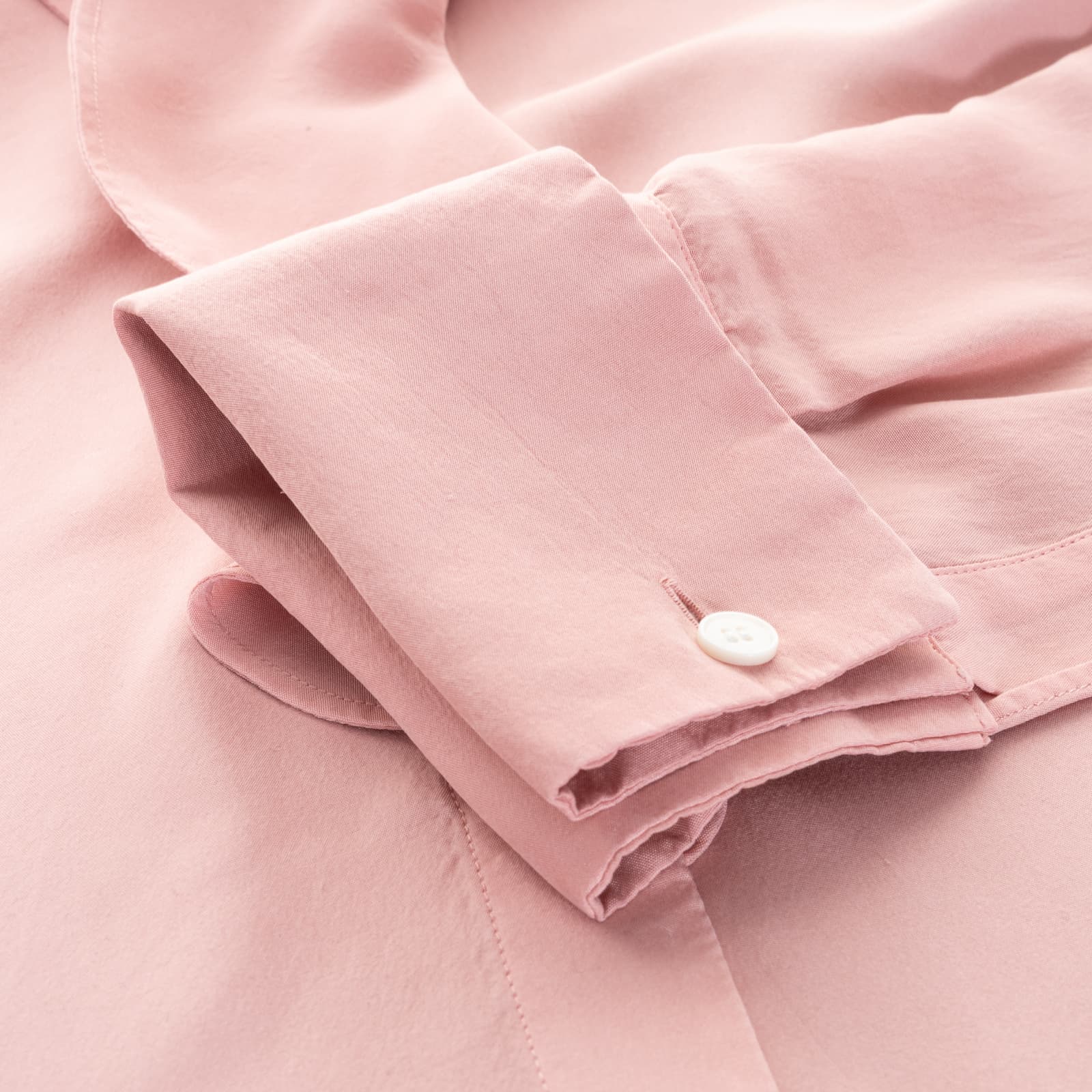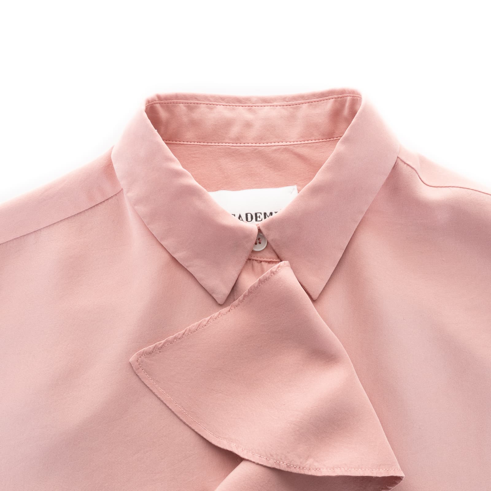Elegant silk blouse “Julie” by Academia. Crafted from pure silk, the blouse offers a fluid drape and an exceptionally light, refined feel. The feminine design is highlighted by a decorative ruffle detail along the button placket, creating a timeless and sophisticated look suitable for both everyday wear and special occasions.