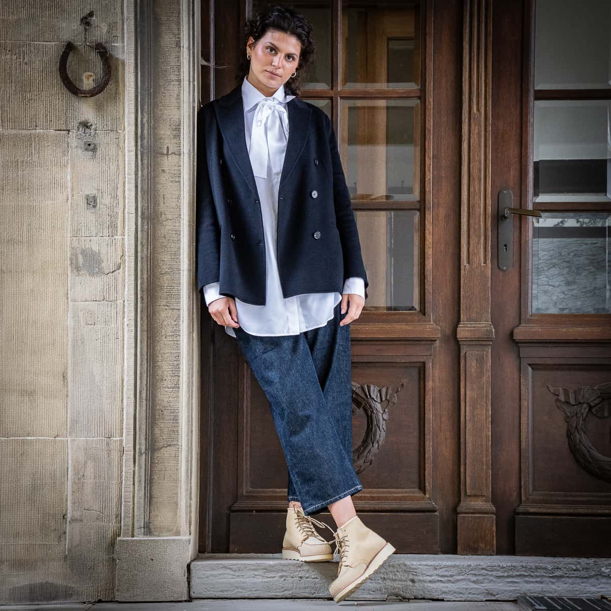 Timeless bow blouse by Caliban made from 100 % Lyocell (Tencel), available in white and light blue. The soft, fluid fabric with a matte sheen ensures elegant drape and supreme comfort. Featuring a relaxed fit, tie-neck detail, concealed button placket and long cuffed sleeves, this blouse is a modern wardrobe staple – easy to style from formal to casual looks.