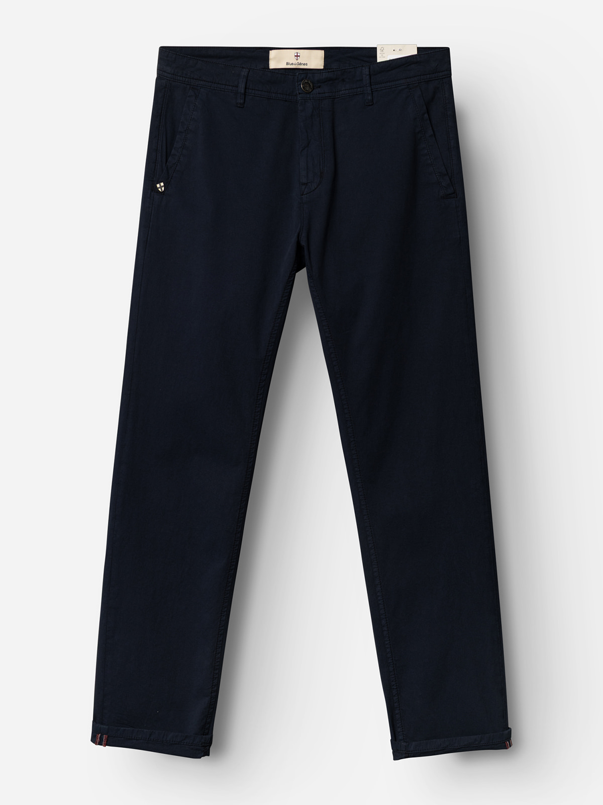 More than 400 years ago, dock workers in Genoa made robust clothing from Arabic cotton called 'Geanes fustian'. Dyed blue with indigo, the durable material was ideal for dock work. The 'Blue from Genoa' - 'Bleu de Gênes' is exported all over the world and makes the 'Blue Jeans' world famous. This story inspired a beautiful denim brand from Denmark to get its name: Blue de Gênes. "Indigo flows through the veins here," they joked. But it's true. You can tell by looking at each denim how much heart and soul it contains. In a small denim factory in Firenze, Italy, the denims are lovingly made by hand. Individual details, personally signed labels and historical manufacturing methods, such as reinforced back pockets and old rivets, refer to another time when denim production was still a true artisan's craft. The combination of classic, traditional values and the redefinition of the stylish, modern man creates an authentic, refined yet pithy vintage look.