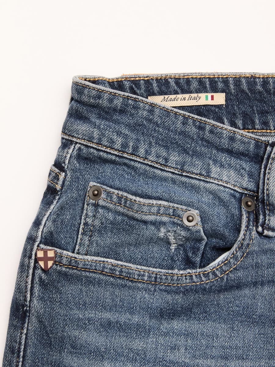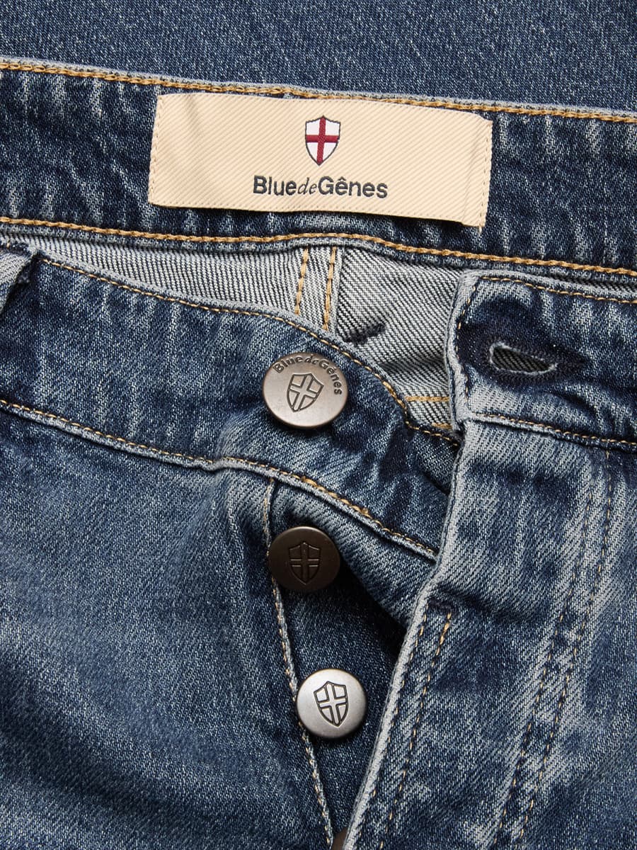More than 400 years ago, dock workers in Genoa made robust clothing from Arabic cotton called 'Geanes fustian'. Dyed blue with indigo, the durable material was ideal for dock work. The 'Blue from Genoa' - 'Bleu de Gênes' is exported all over the world and makes the 'Blue Jeans' world famous. This story inspired a beautiful denim brand from Denmark to get its name: Blue de Gênes. "Indigo flows through the veins here," they joked. But it's true. You can tell by looking at each denim how much heart and soul it contains. In a small denim factory in Firenze, Italy, the denims are lovingly made by hand. Individual details, personally signed labels and historical manufacturing methods, such as reinforced back pockets and old rivets, refer to another time when denim production was still a true artisan's craft. The combination of classic, traditional values and the redefinition of the stylish, modern man creates an authentic, refined yet pithy vintage look.