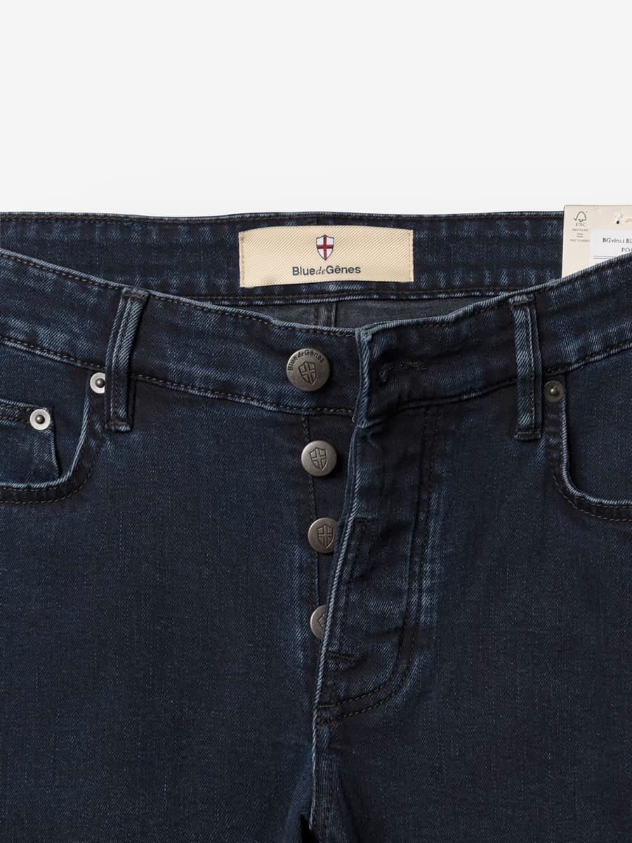 More than 400 years ago, dock workers in Genoa made robust clothing from Arabic cotton called 'Geanes fustian'. Dyed blue with indigo, the durable material was ideal for dock work. The 'Blue from Genoa' - 'Bleu de Gênes' is exported all over the world and makes the 'Blue Jeans' world famous. This story inspired a beautiful denim brand from Denmark to get its name: Blue de Gênes. "Indigo flows through the veins here," they joked. But it's true. You can tell by looking at each denim how much heart and soul it contains. In a small denim factory in Firenze, Italy, the denims are lovingly made by hand. Individual details, personally signed labels and historical manufacturing methods, such as reinforced back pockets and old rivets, refer to another time when denim production was still a true artisan's craft. The combination of classic, traditional values and the redefinition of the stylish, modern man creates an authentic, refined yet pithy vintage look.
