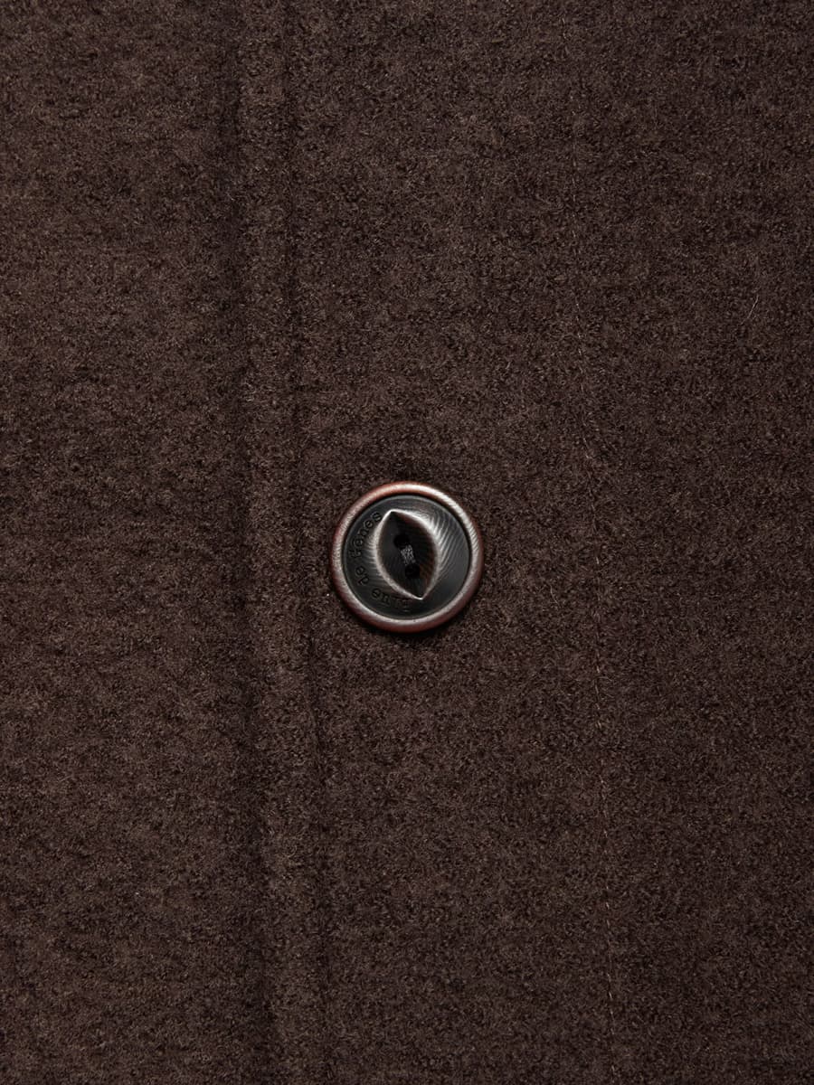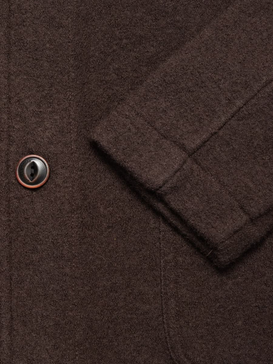 Boiled wool is produced by felting knitted wool through heat and moisture – a traditional technique that compacts the fibers, making the fabric water-repellent, wind-resistant, and highly durable. At the same time, it remains soft and naturally elastic. A piece with historic character, reinterpreted for the modern wardrobe.
