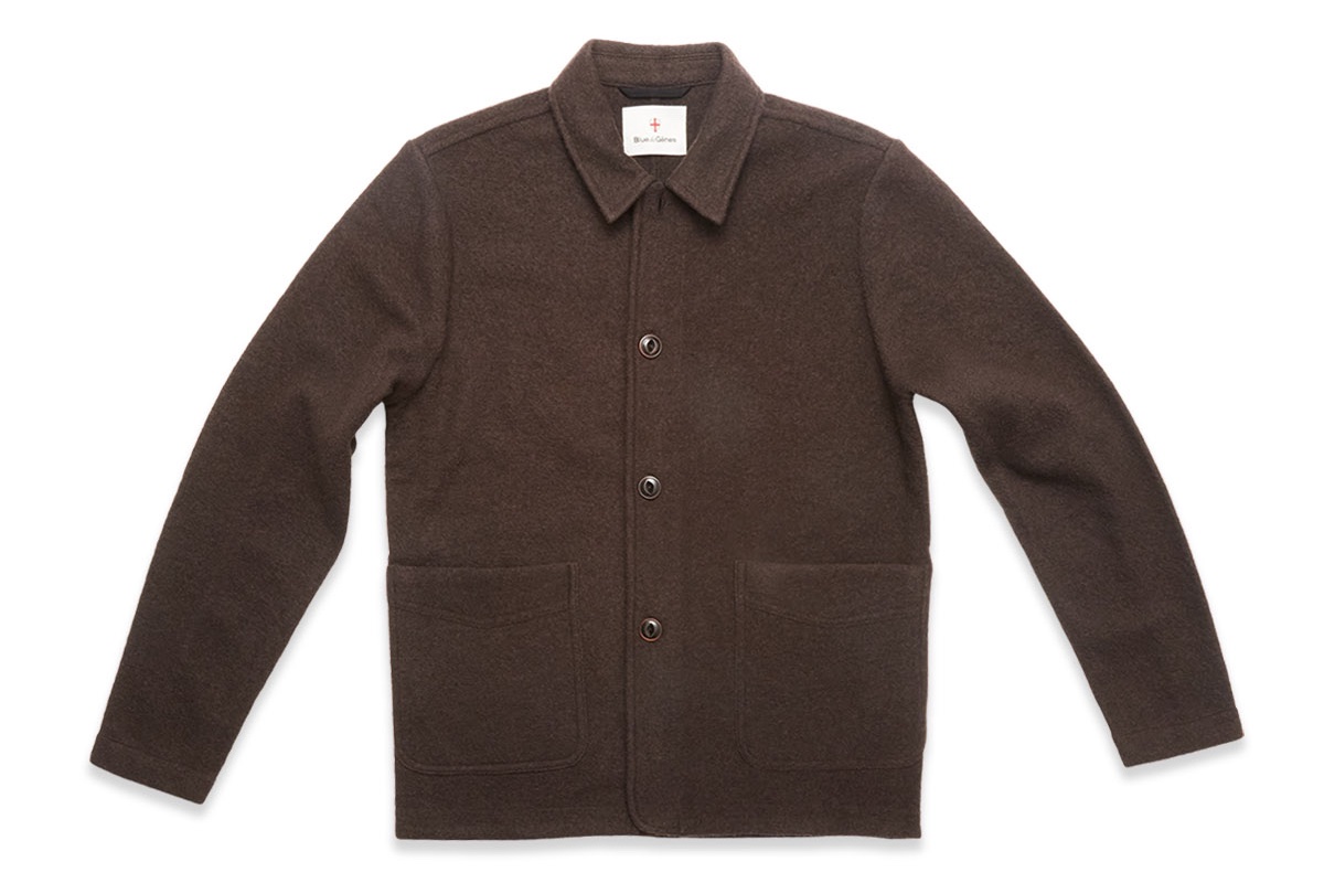 The Kojima Wool Jacket by Blue de Gênes merges the world of knitwear and outerwear in a thoughtful design. Made from 100% boiled wool, it offers natural insulation, wind resistance, and a soft, flexible feel – ideal for transitional seasons and cooler days. The structured surface references traditional workwear jackets, while the classic shirt collar and patched front pockets provide a timeless silhouette. Finely engraved corozo buttons add a refined and natural detail that speaks to the craftsmanship of Blue de Gênes.