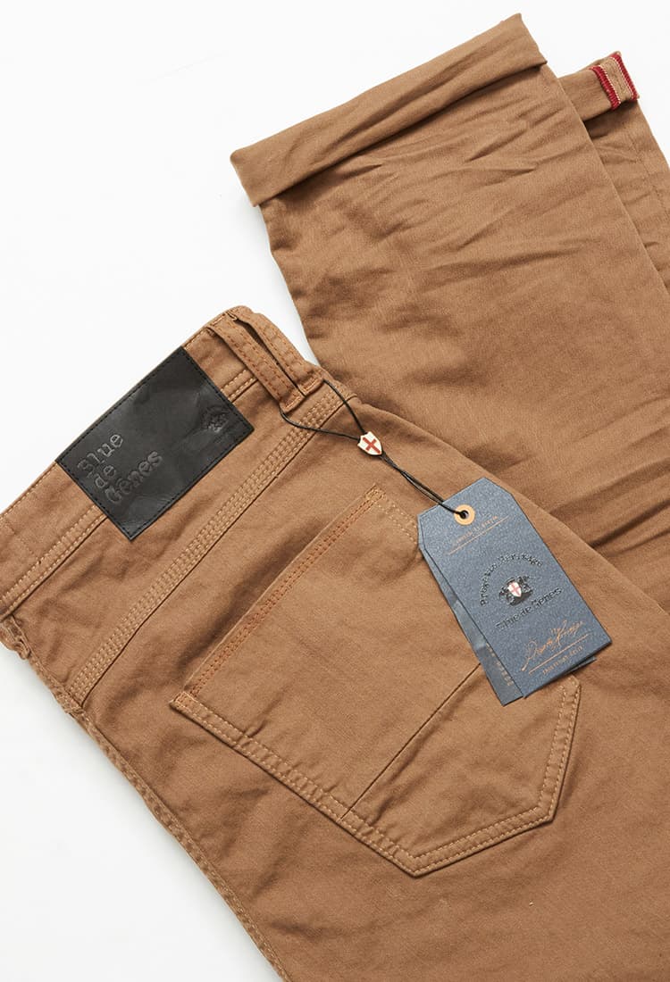 More than 400 years ago, dock workers in Genoa made robust clothing from Arabic cotton called 'Geanes fustian'. Dyed blue with indigo, the durable material was ideal for dock work. The 'Blue from Genoa' - 'Bleu de Gênes' is exported all over the world and makes the 'Blue Jeans' world famous. This story inspired a beautiful denim brand from Denmark to get its name: Blue de Gênes. "Indigo flows through the veins here," they joked. But it's true. You can tell by looking at each denim how much heart and soul it contains. In a small denim factory in Firenze, Italy, the denims are lovingly made by hand. Individual details, personally signed labels and historical manufacturing methods, such as reinforced back pockets and old rivets, refer to another time when denim production was still a true artisan's craft. The combination of classic, traditional values and the redefinition of the stylish, modern man creates an authentic, refined yet pithy vintage look.