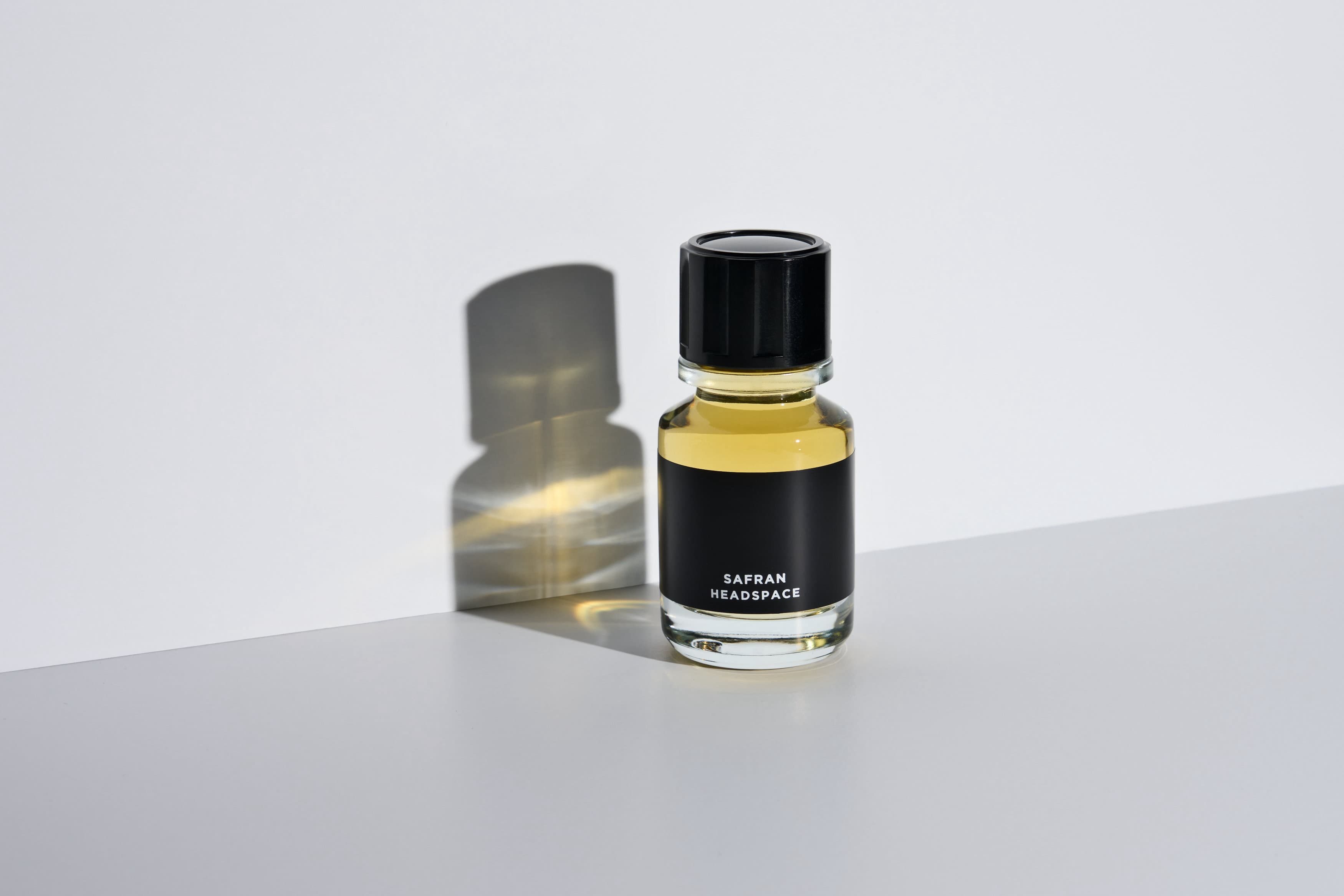 A smoky, vibrant opening of Lapsang Souchong black tea (Headspace), green galbanum, spicy cardamom and dry pepper. At its heart, warm mineral saffron glows, nuanced by bitter mate, resinous incense and powdery iris. The base reveals tanned leather, fruity osmanthus and earthy patchouli, creating a deep, multi-layered trail.