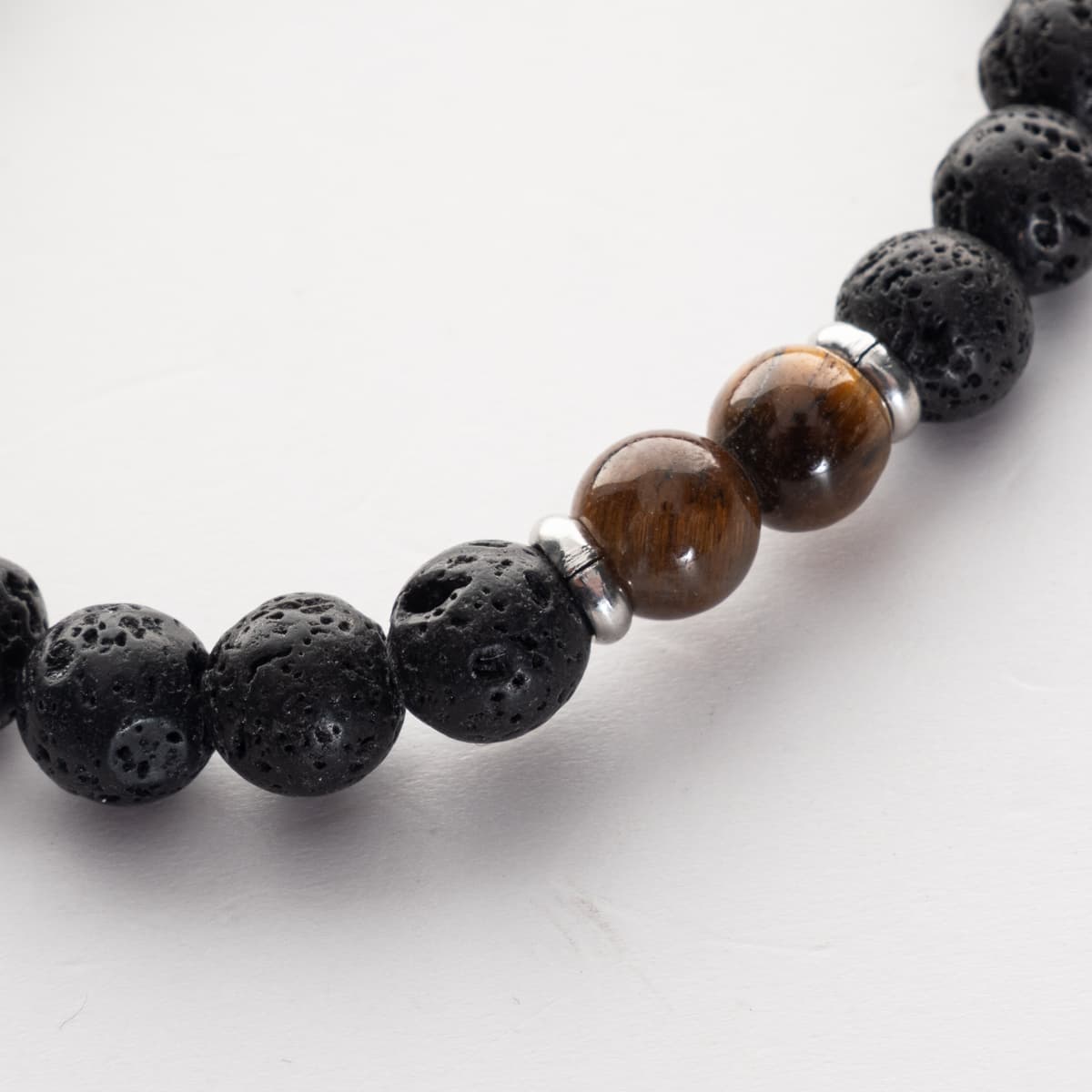 - Beaded bracelet with black lava beads and brown-golden tiger’s eye beads