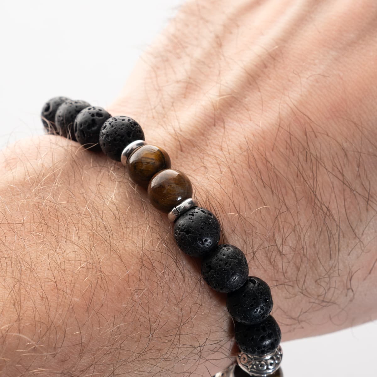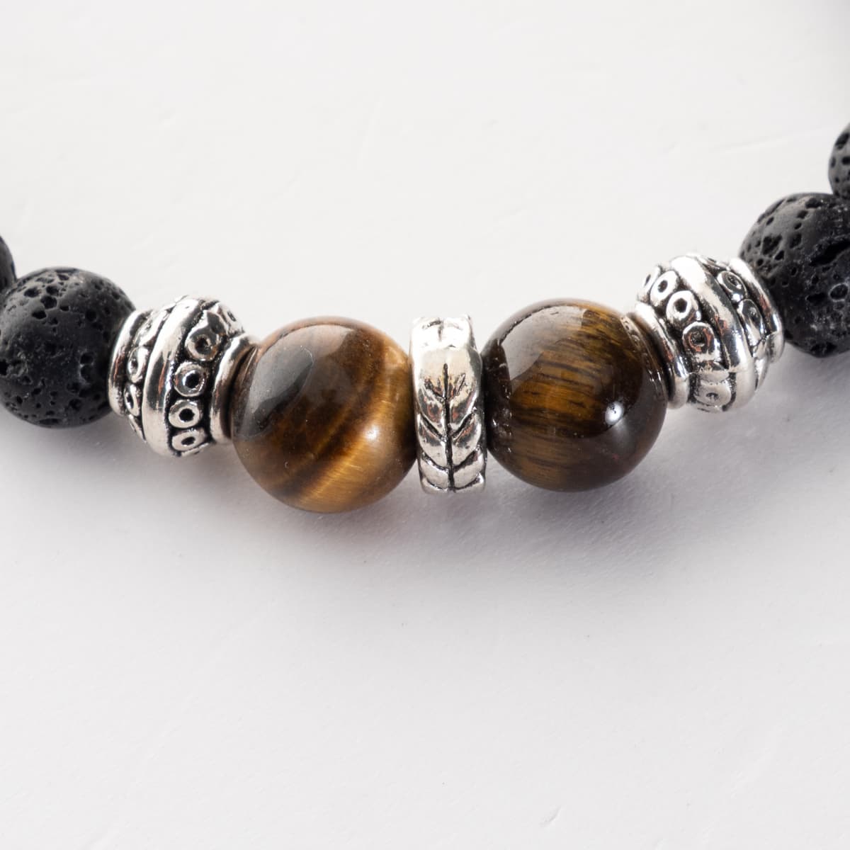 - Material: volcanic stone (lava), tiger’s eye, metal elements