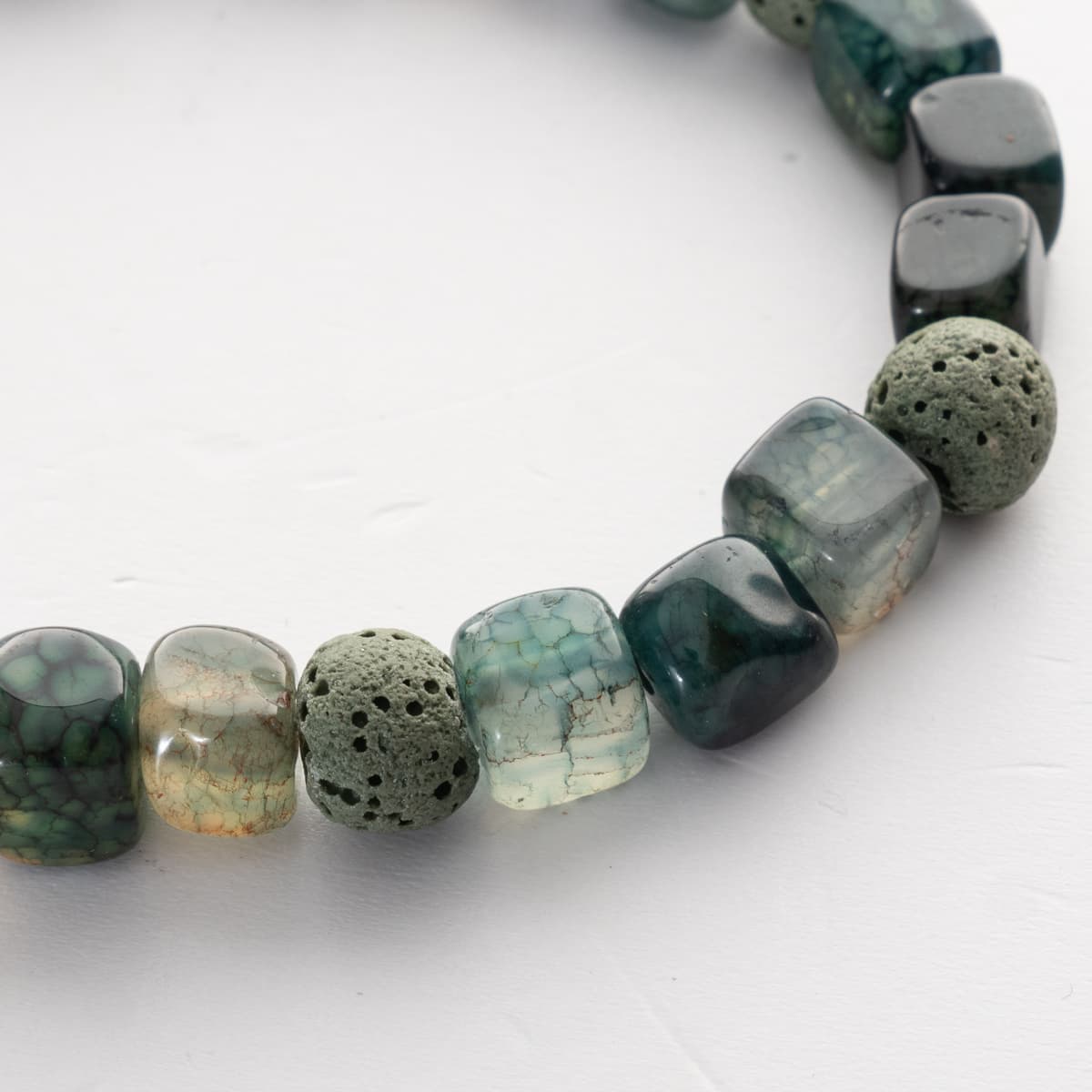 - Polished, green marbled agate beads in a cube shape