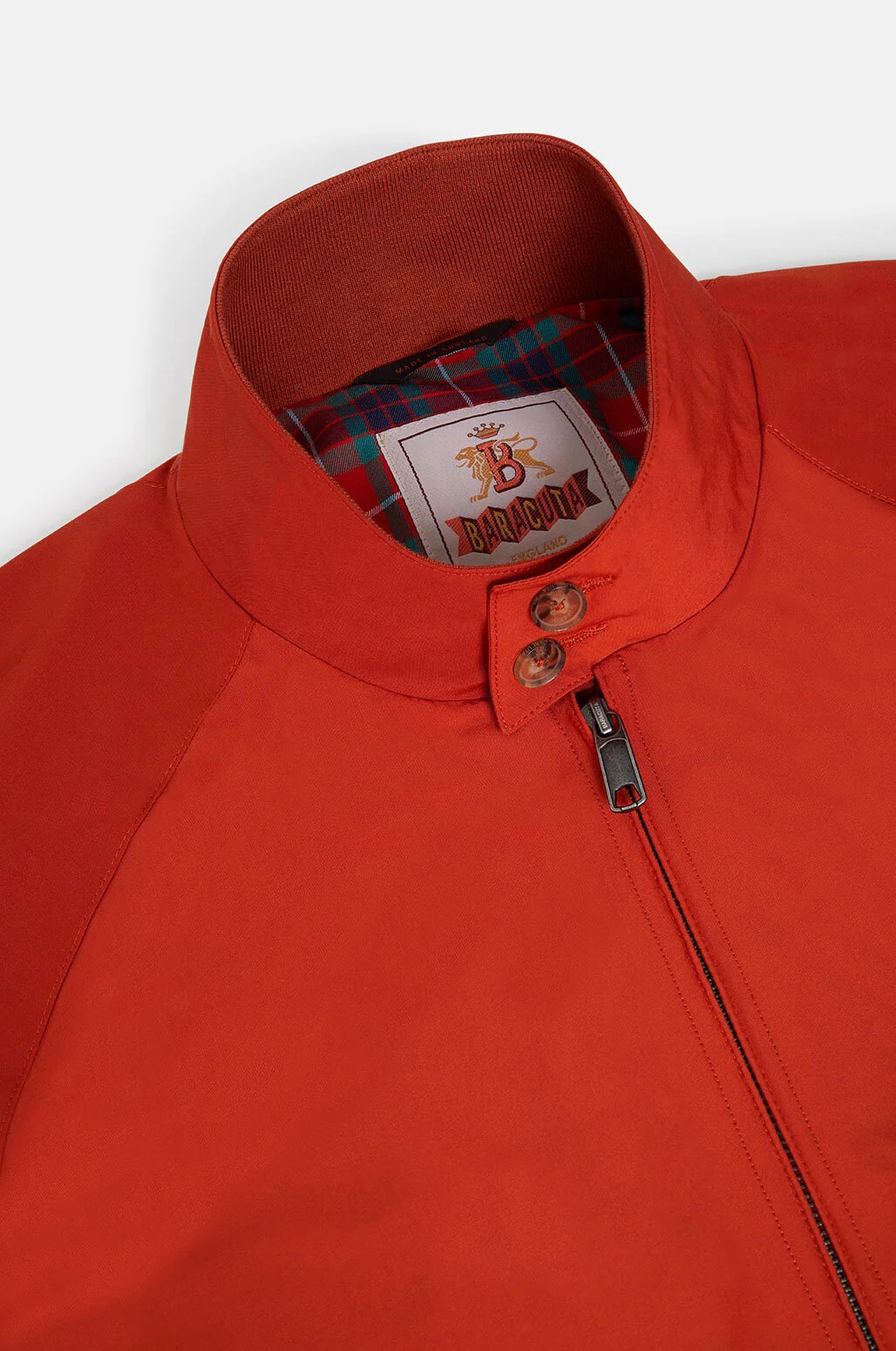 - Classic Baracuta collar with two buttons
