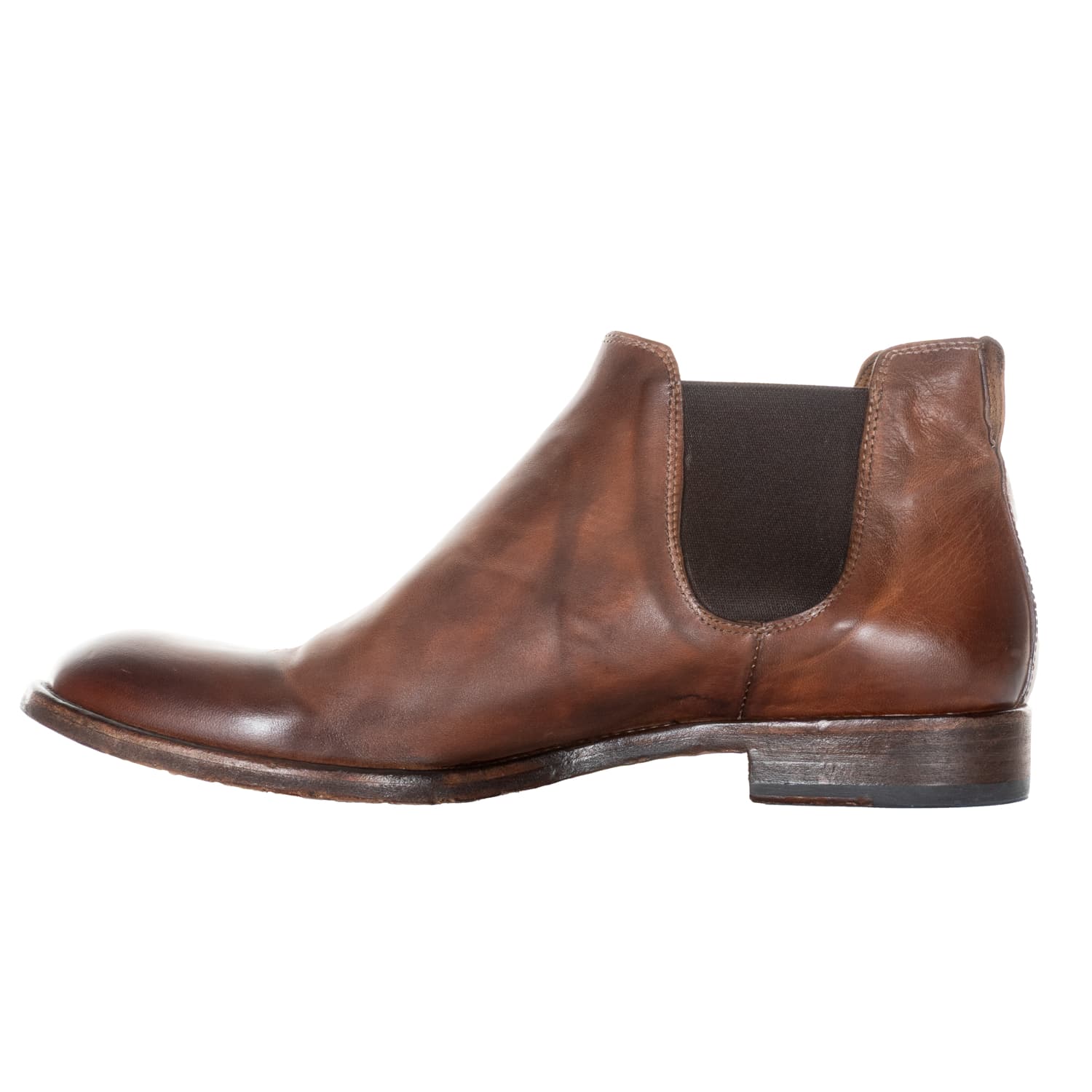 This Chelsea boot from Shoto made from washed horse leather impresses with its outstanding craftsmanship and excellent finish. The different shades of brown and light cognac are achieved through a special dyeing and washing process.