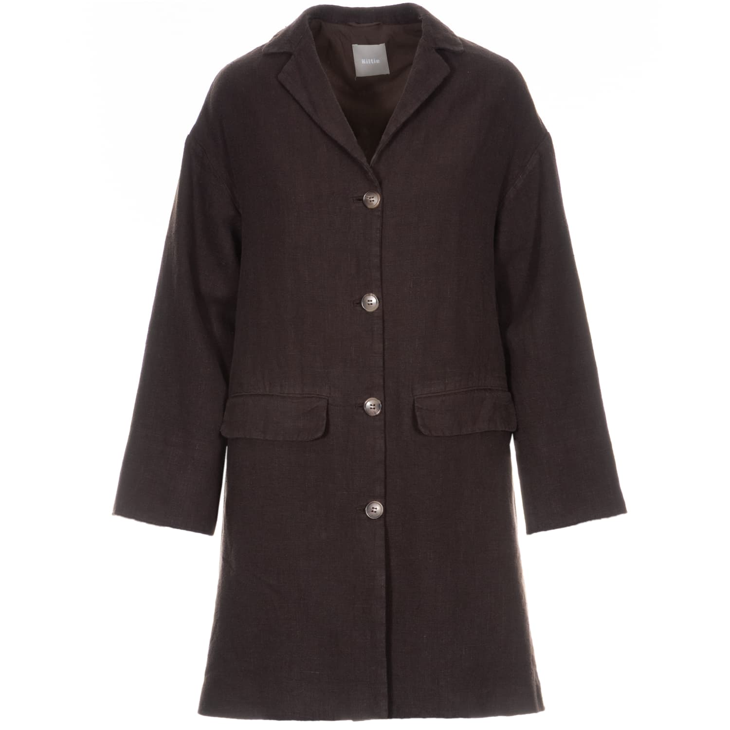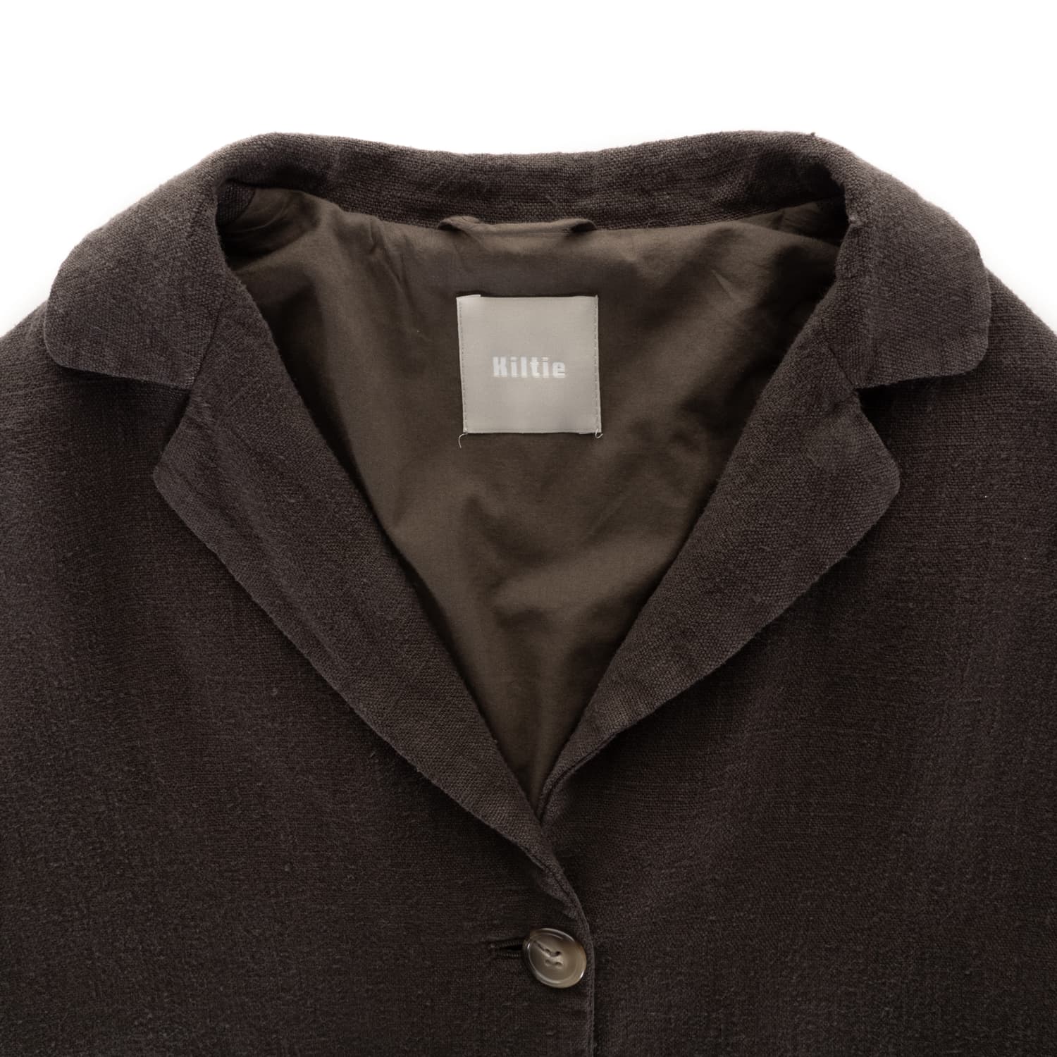 This short coat by Kiltie combines Italian tailoring with the relaxed elegance of pure linen. The softly falling lapel and clean silhouette create a timeless look, while the lightweight linen fabric offers a natural texture and comfortable breathability. A versatile piece that works effortlessly over dresses, blouses, or fine knitwear.