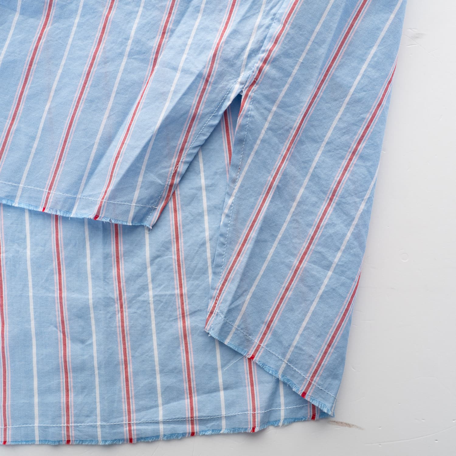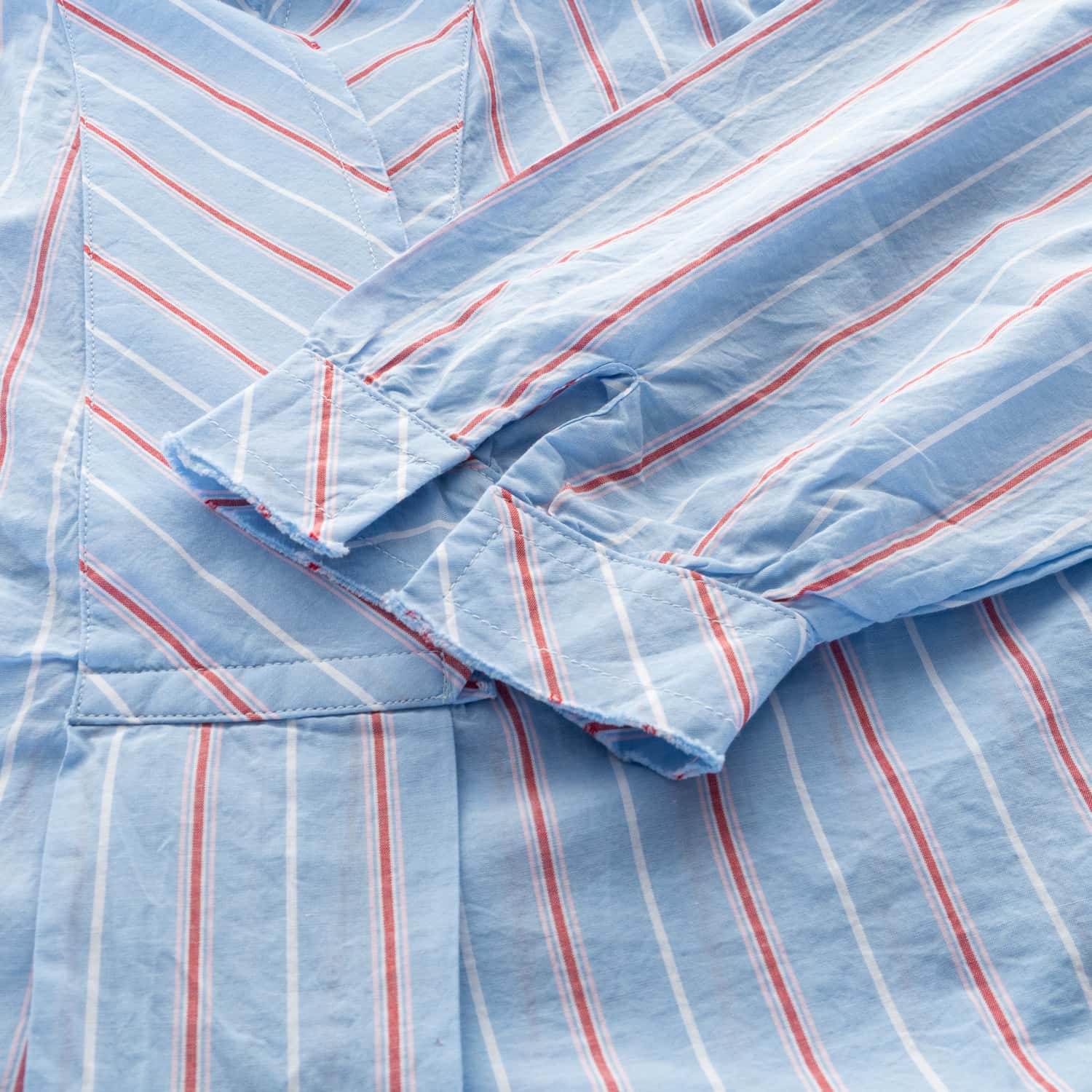 - Fine stripe pattern in light blue/white/red