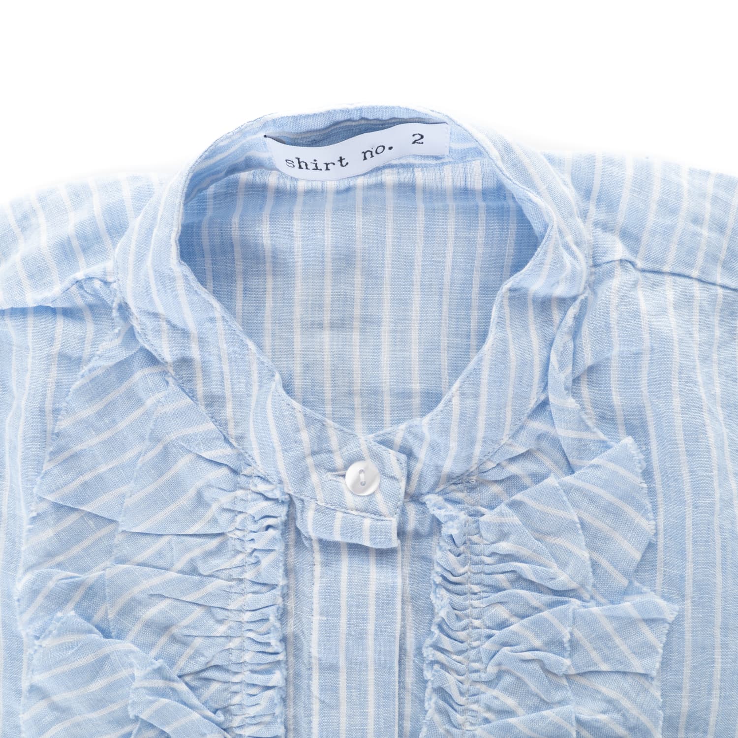 - Fine striped look in light blue/white