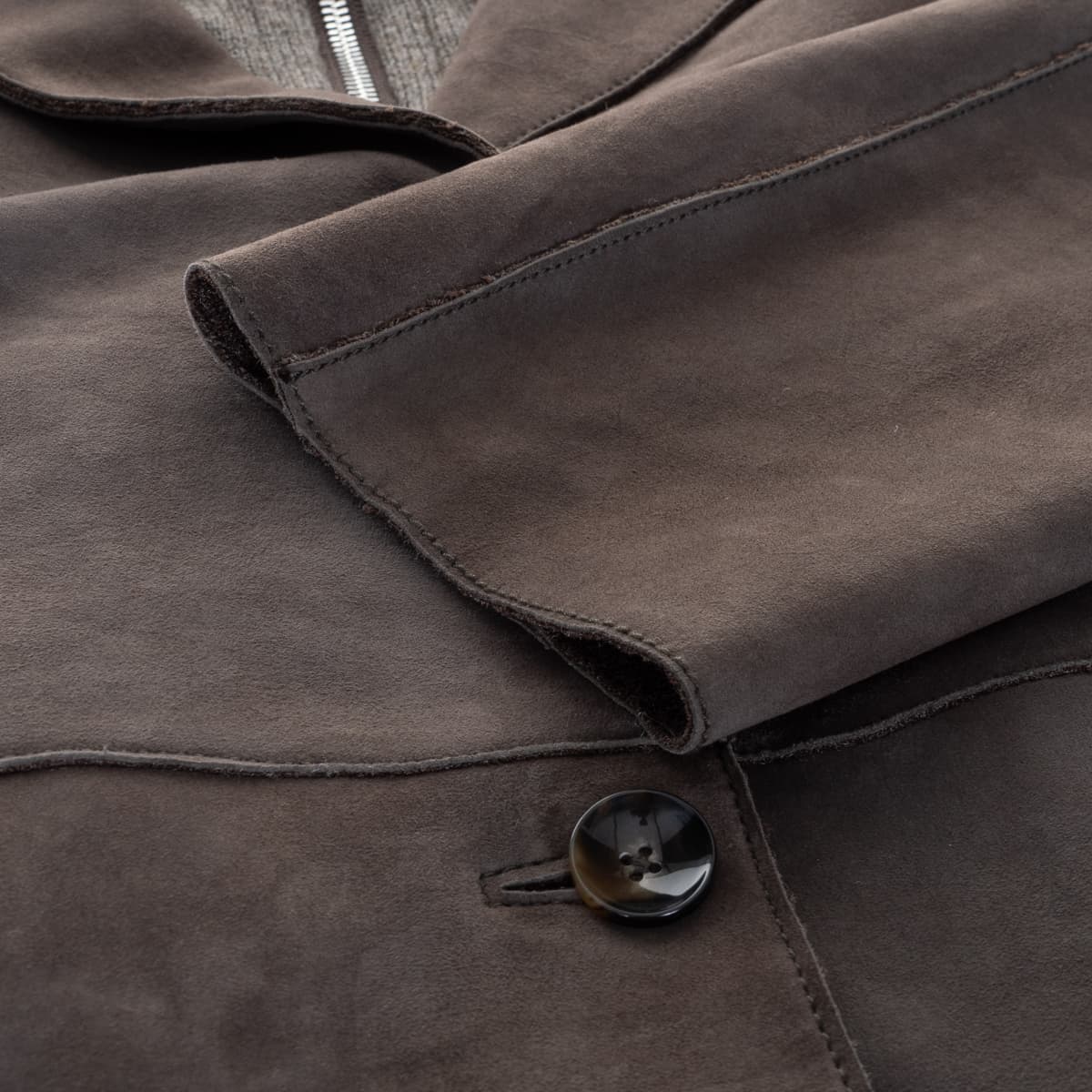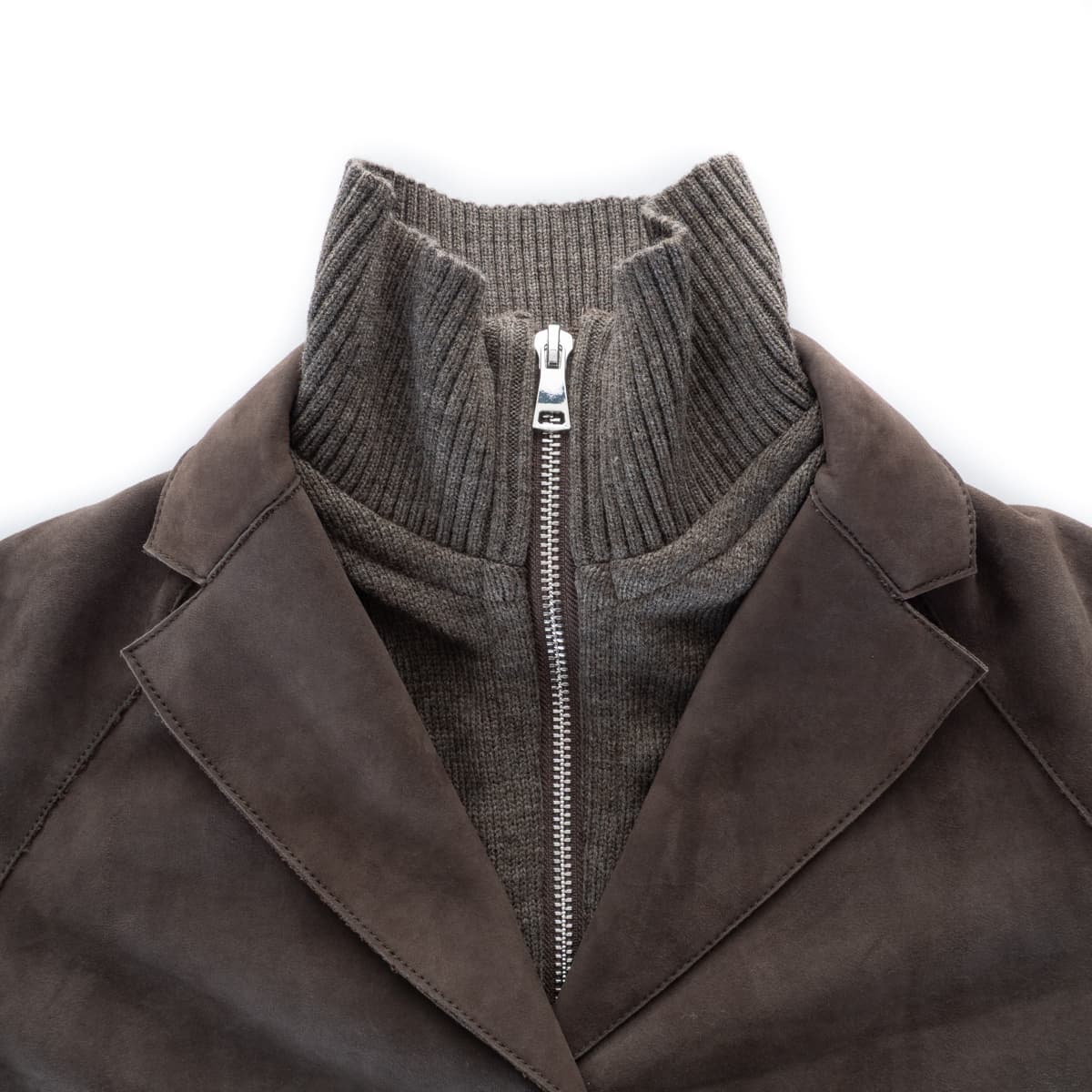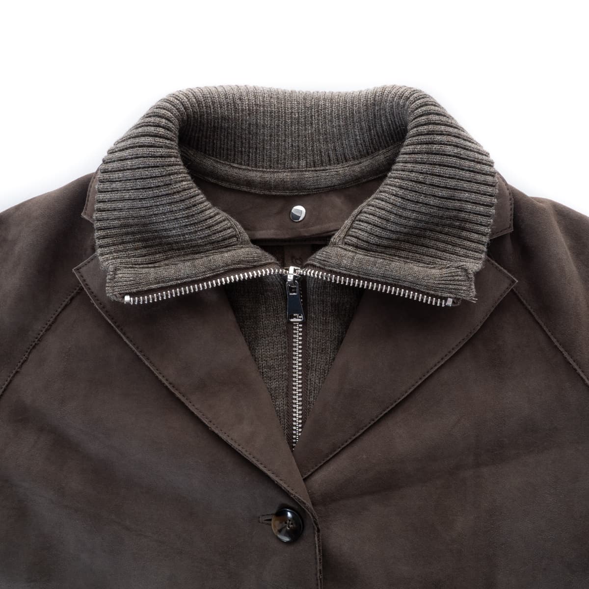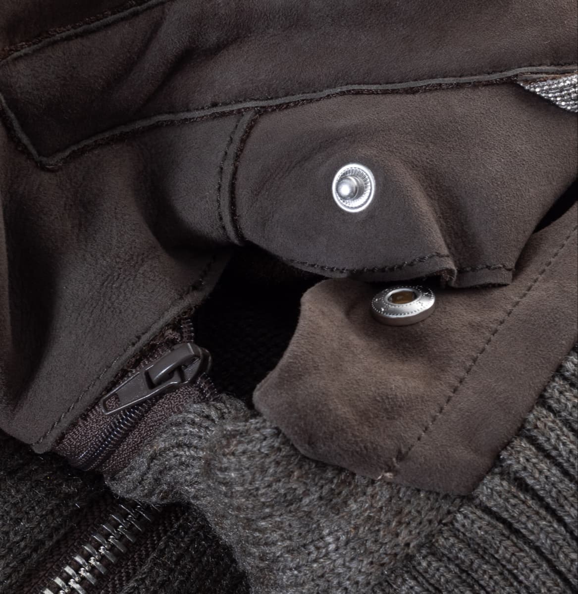 The “Sole Leaf” leather jacket by Jackie and the Jack combines craftsmanship with functional design. Made from premium soft leather in a timeless taupe tone, it features a detachable knitted collar with zip, allowing for a versatile look – from sporty to sophisticated. The smooth lining with stretch ensures maximum comfort, while horn buttons and side welt pockets complete the refined appearance. A perfect mid-season jacket – “For When It’s Not Quite Cold, Not Quite Warm”.