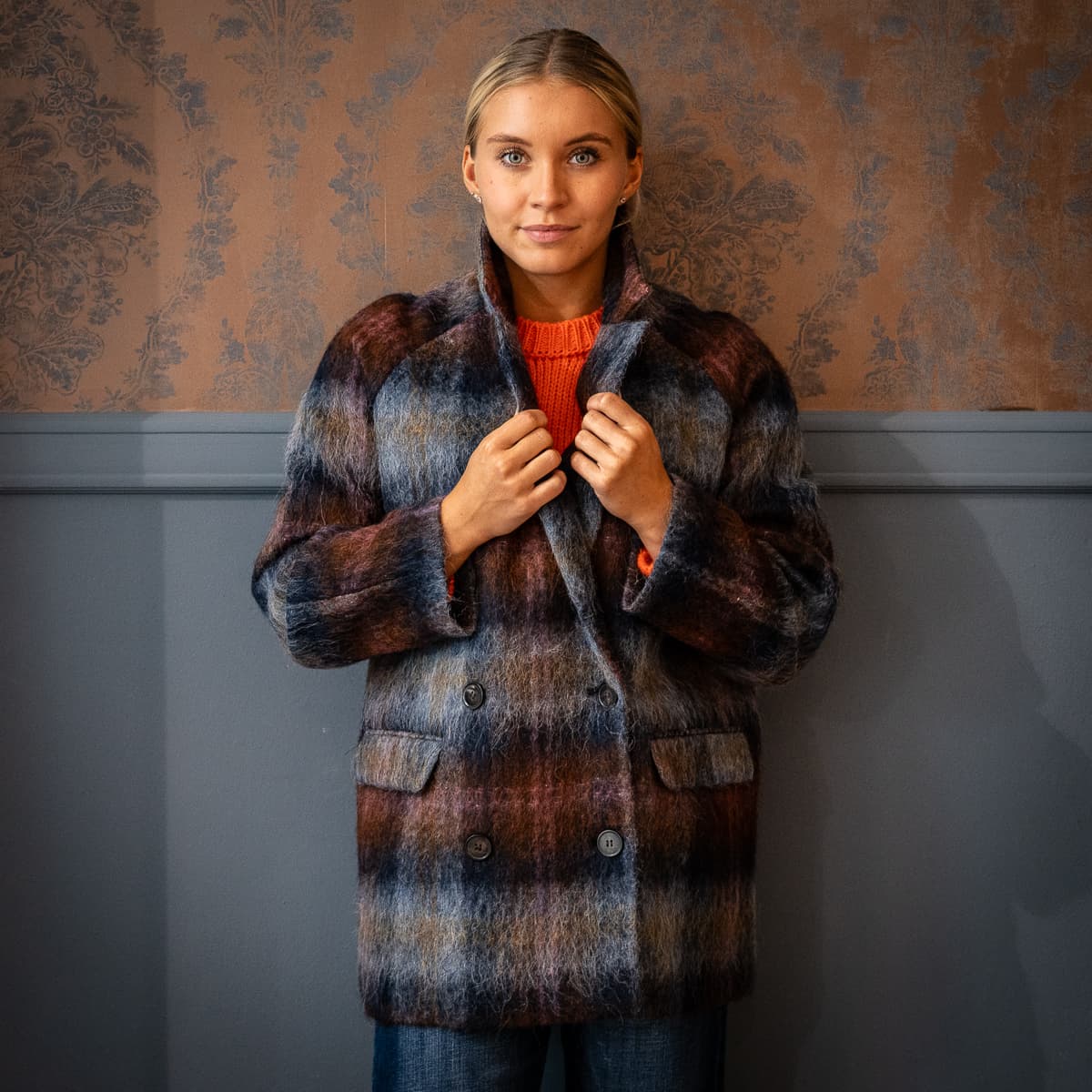 Casual, colourful and soft: the checked double-breasted coat from Des Petits Hauts combines a fluffy feel with a relaxed cut. A stylish companion for cool days – charming and versatile.