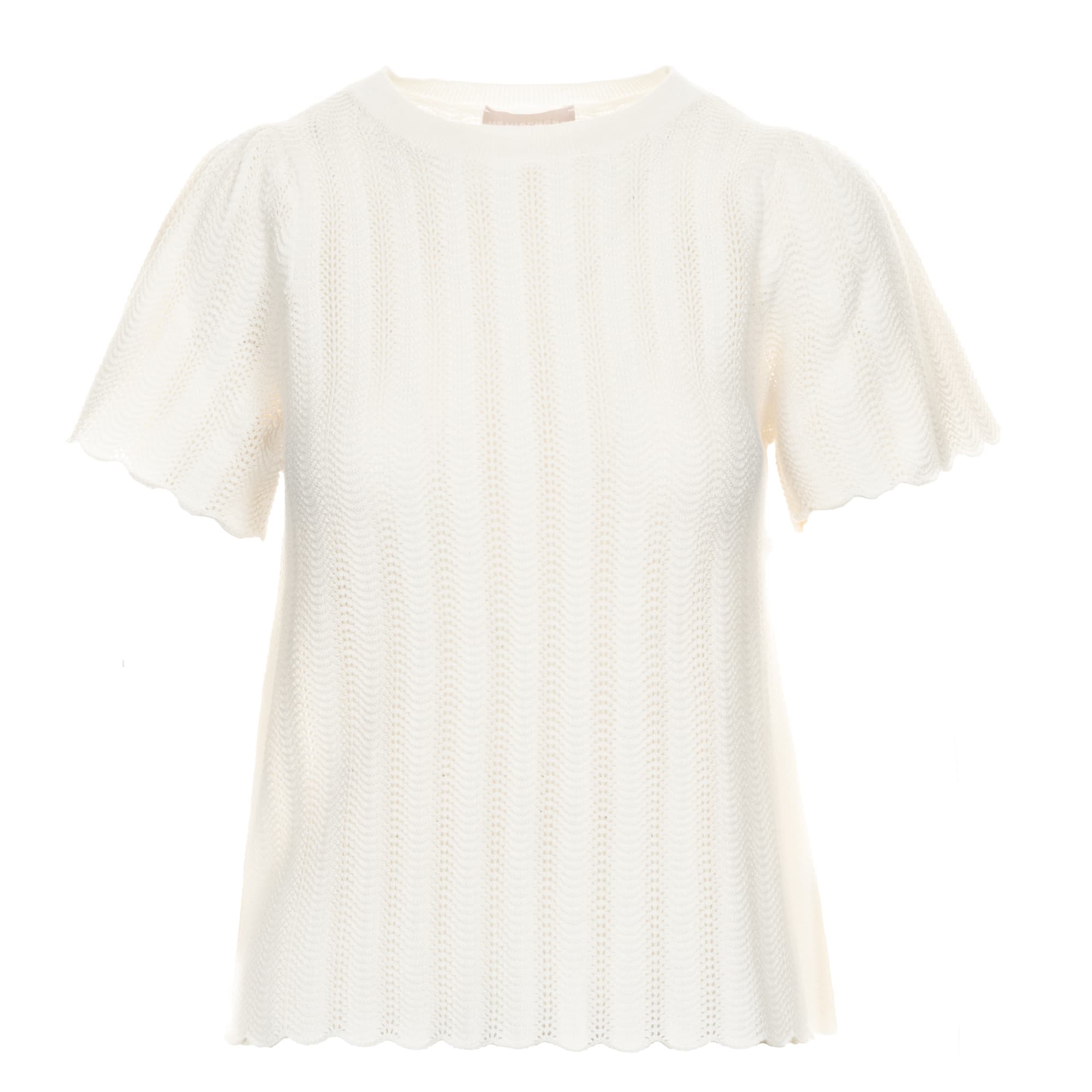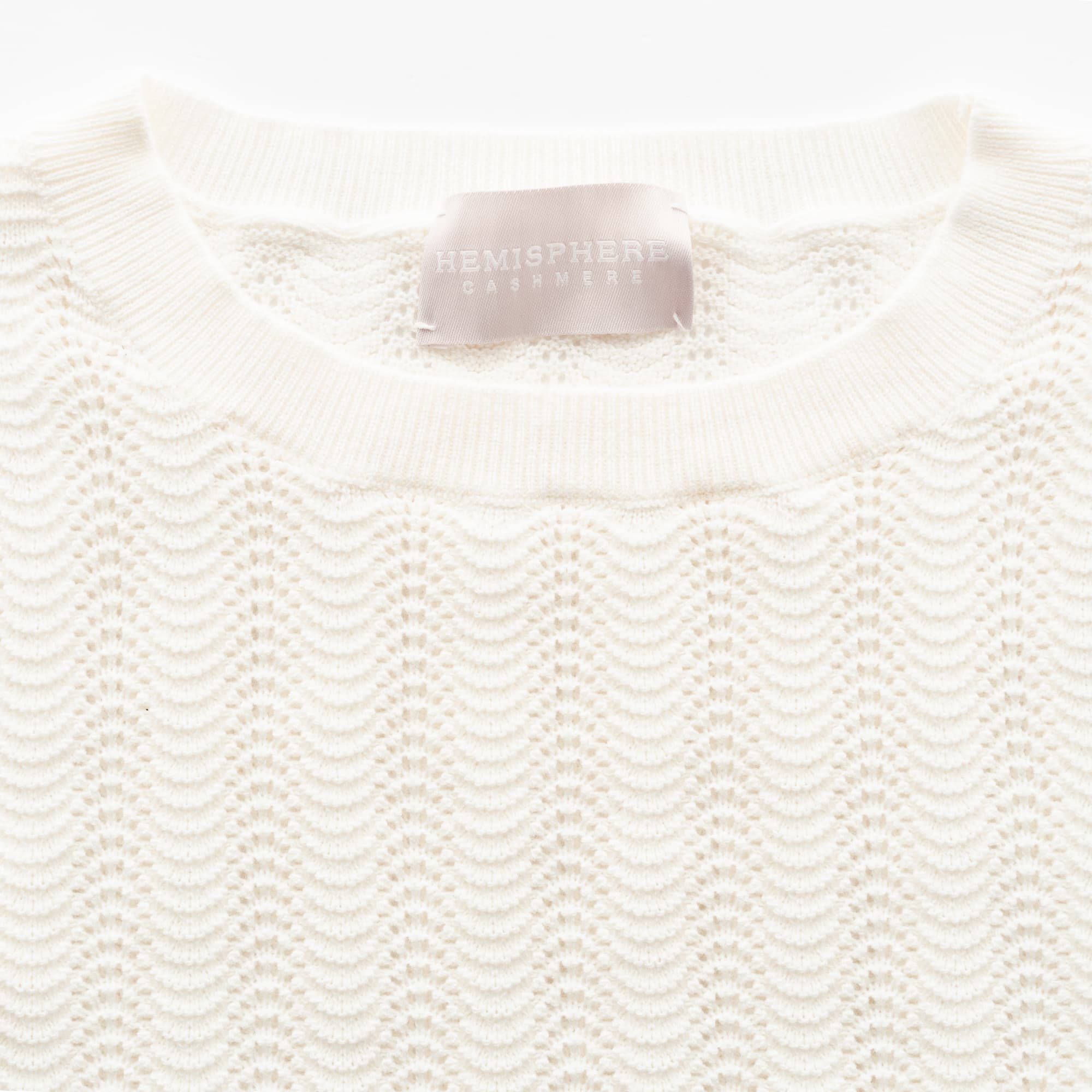 This Hemisphere knitted shirt in off-white impresses with its sophisticated cotton-silk-cashmere blend, which makes it particularly soft and comfortable to wear. The feminine design with slightly flared, short sleeves and wavy hems gives the jumper an elegant touch. Perfect for stylish everyday looks or special occasions!