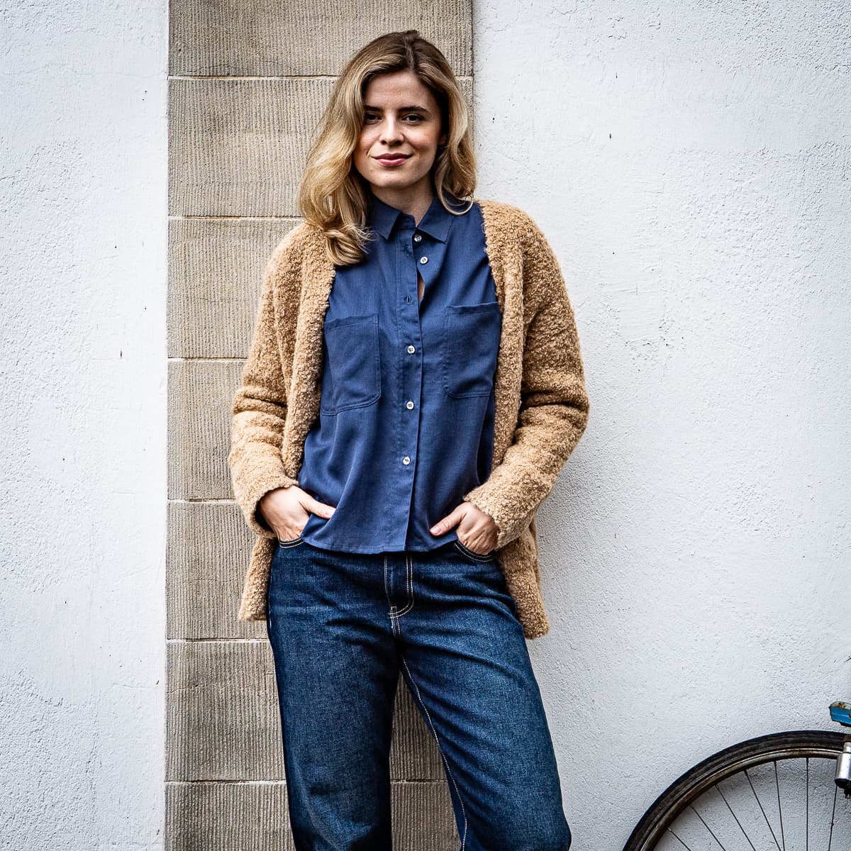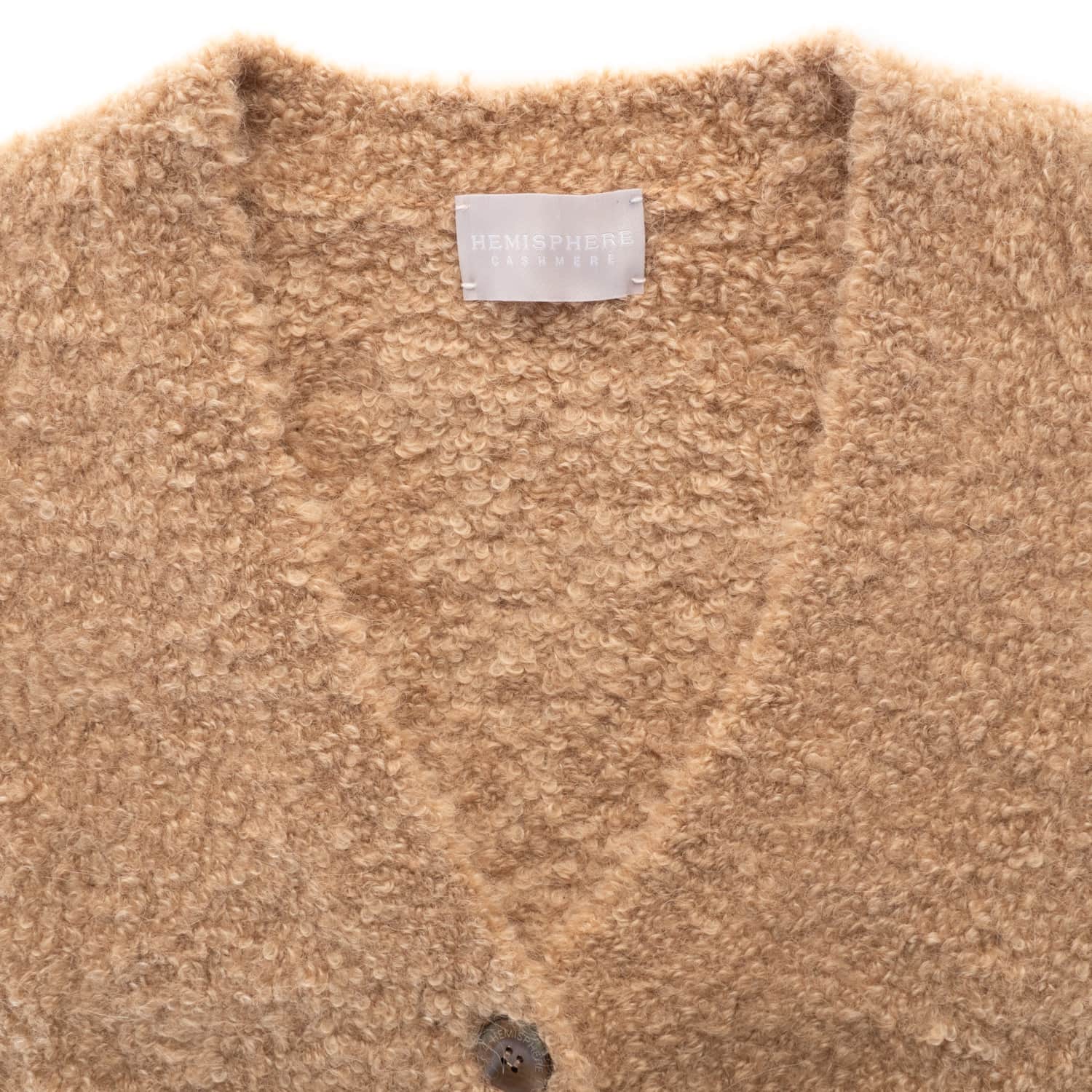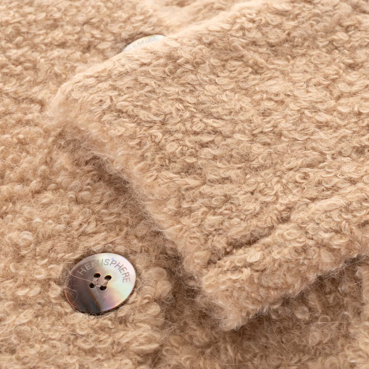 This soft knit cardigan from Hemisphere blends luxurious materials with a cozy bouclé texture. With its voluminous surface, deep V-neckline and patch pockets, it strikes a perfect balance between elegance and casual ease. The large mother-of-pearl buttons add a refined touch, while the relaxed fit ensures comfort. Ideal for cool days – whether worn solo or layered in sophisticated outfits.