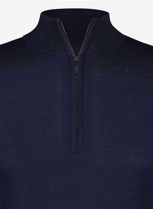 Fine quarter-zip sweater “Berlin” by Shirt No. 2 made from 100% extrafine merino wool. The luxurious fine knit fabric ensures a pleasant feel, high breathability, and natural temperature regulation. With its clean silhouette and soft turtleneck, this sweater is easy to combine whether worn under a blazer or on its own. A timeless classic for the colder season that stands out for its quality.