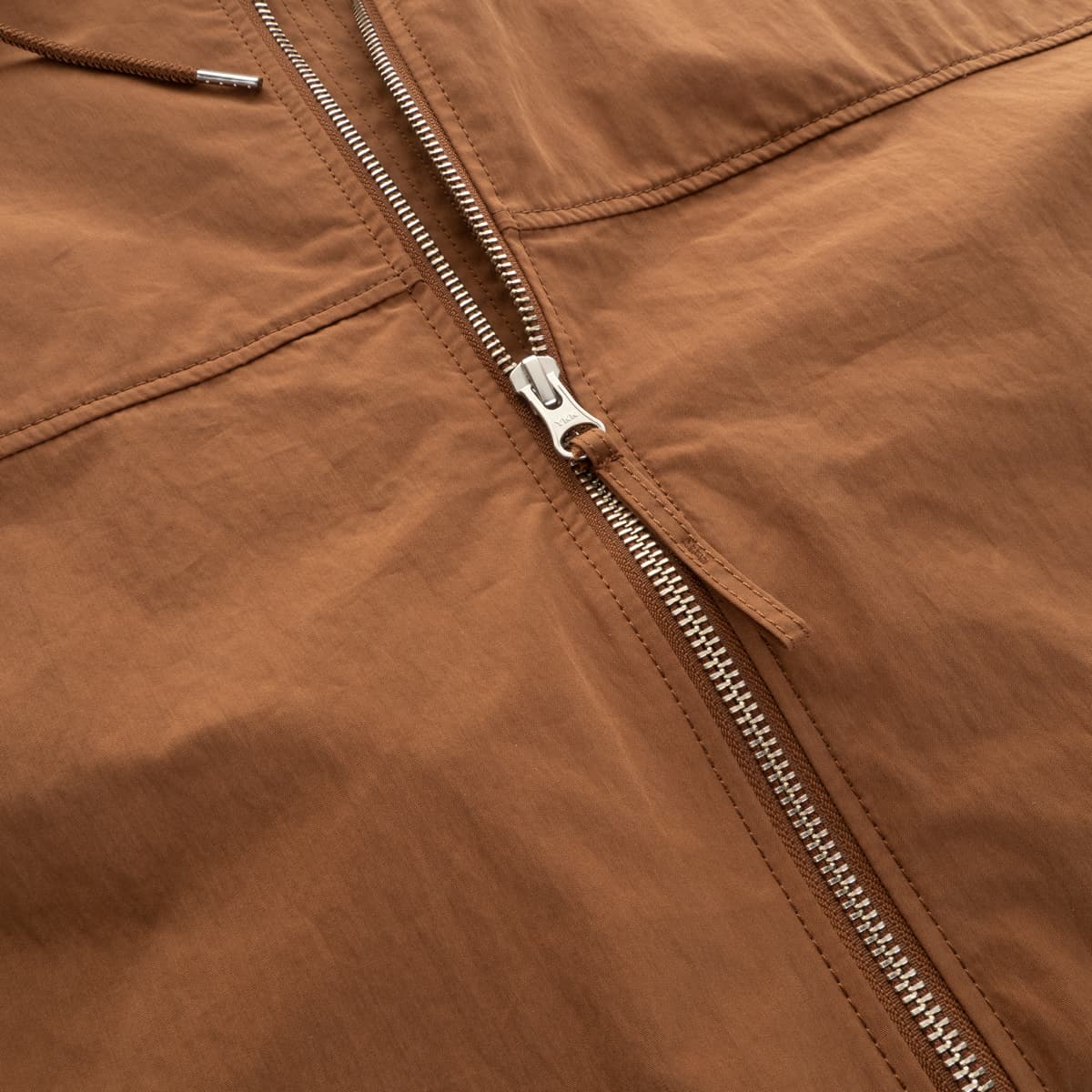 Lightweight midlayer jacket from TEN C in a regular fit with full zip and hood. This jacket is made from a premium cotton-polyamide fabric that offers durability, breathability, and a comfortable feel. Side slip pockets and adjustable sleeve cuffs complete the functional design.