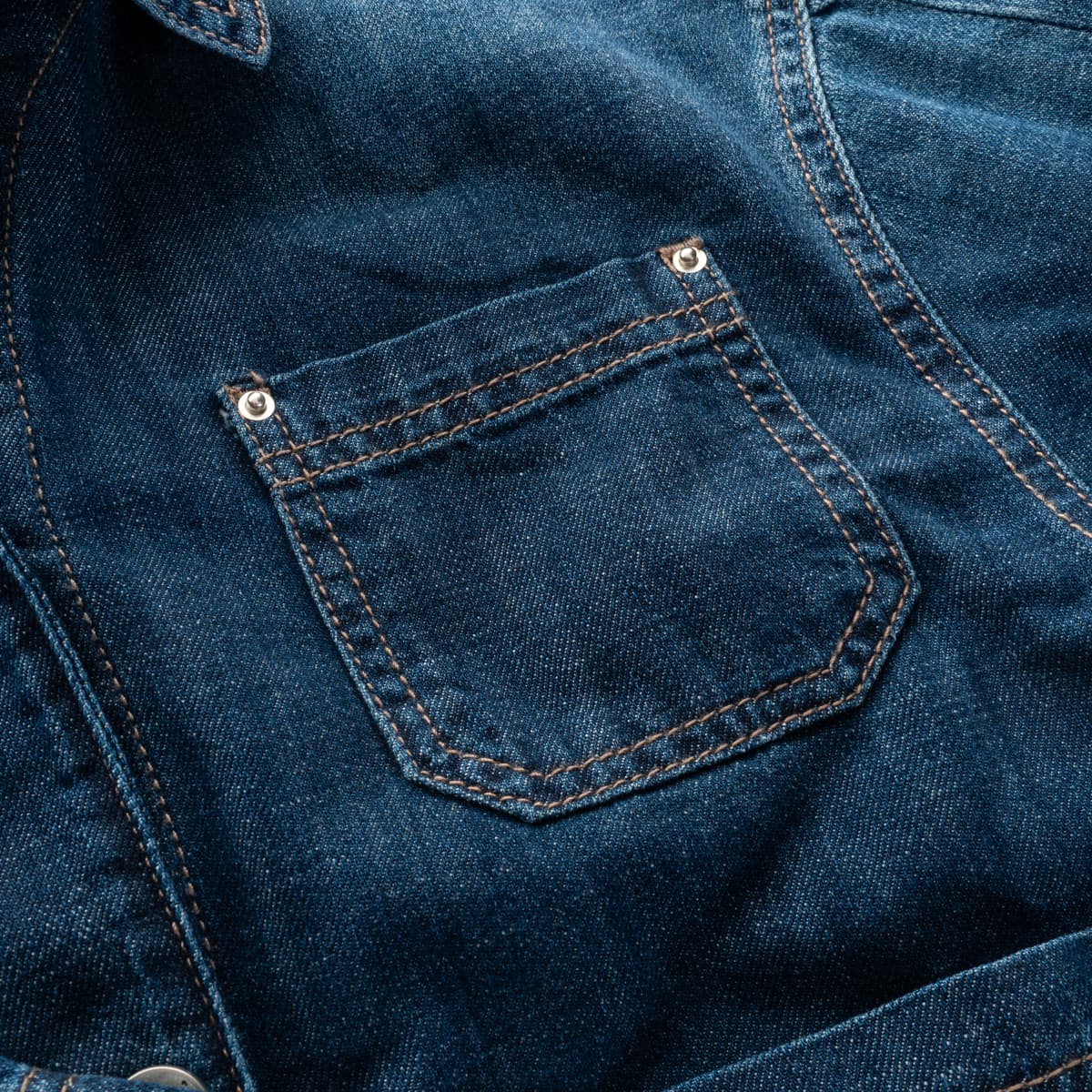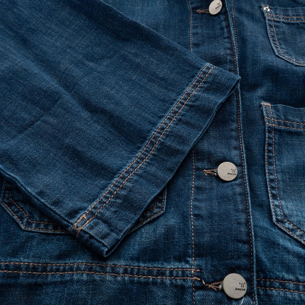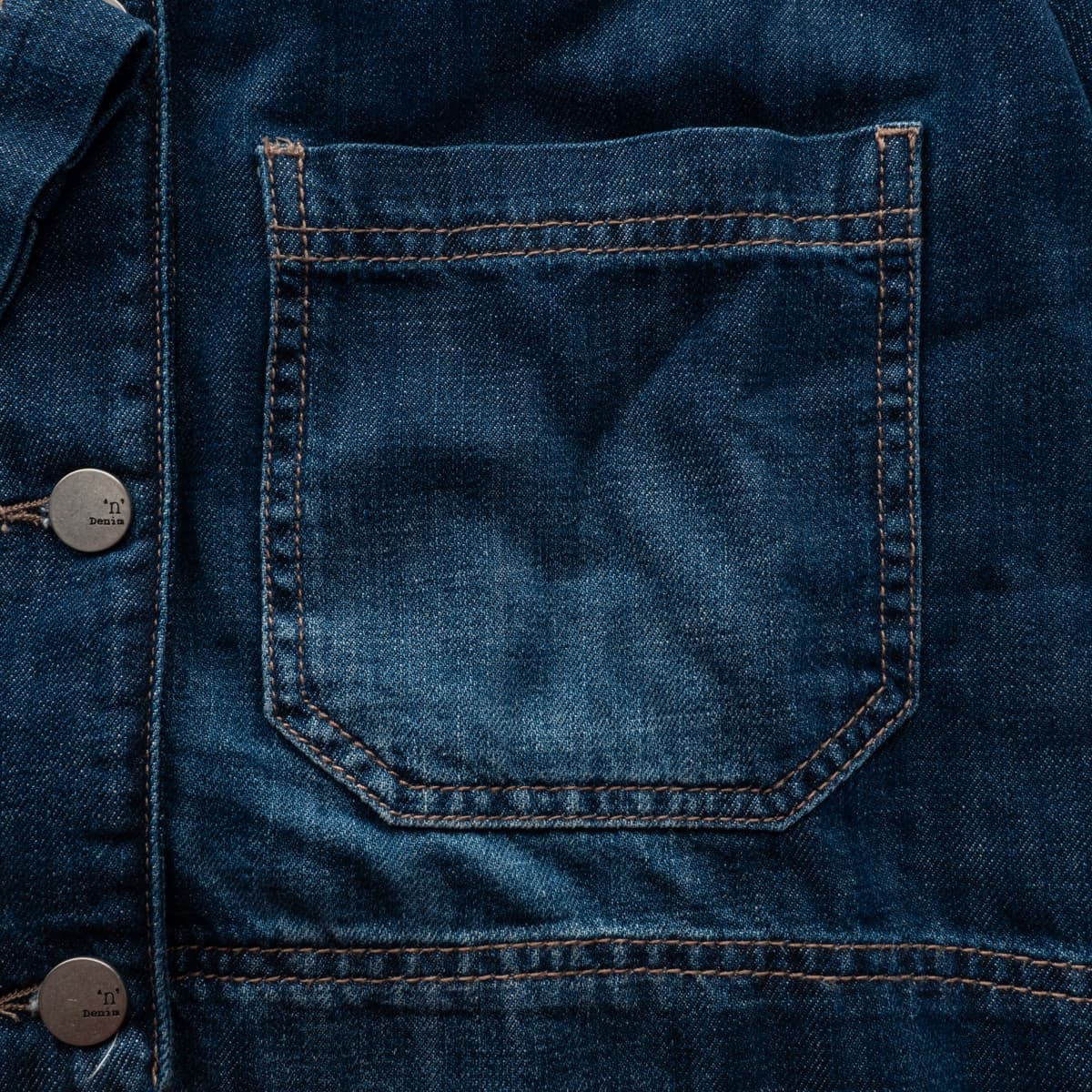 - Contrast stitching in typical denim style