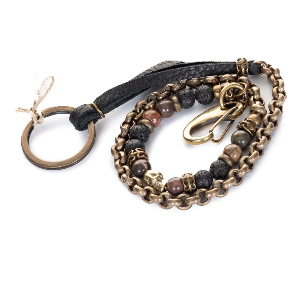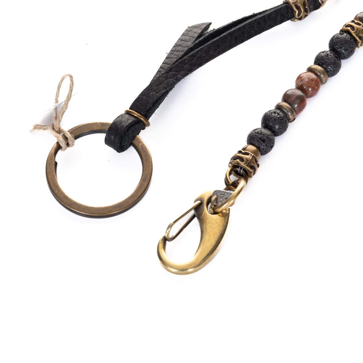 The "Pic" wallet chain by XXL Hardwear is perfect for wallets, keys, or as a bold accessory. Crafted from leather, lava stone, and tiger’s eye, it features aged brass elements for an authentic, rugged look. Each stone is naturally unique, and the inner double steel wire ensures exceptional durability and tear resistance.
