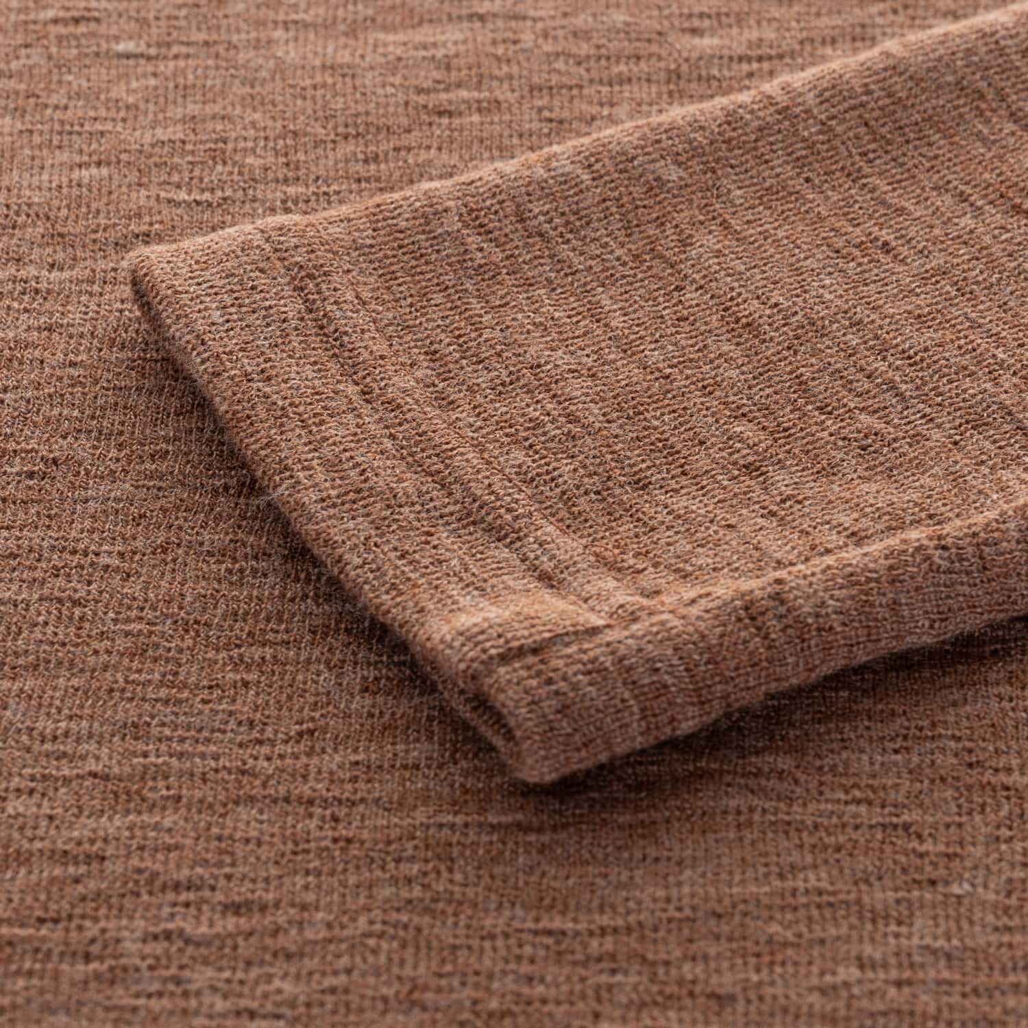 This knitted pullover in ‘Camel Melange’ impresses with its clear lines, high-quality workmanship and natural functionality. Made from 100% finest wool (merino wool), it offers optimum comfort, temperature equalisation and a pleasantly soft feel against the skin. The slim fit in combination with the slightly wider round neckline makes it a versatile essential for any wardrobe. Ideal for wearing with a T-shirt underneath. Handmade in Europe - each piece is unique.