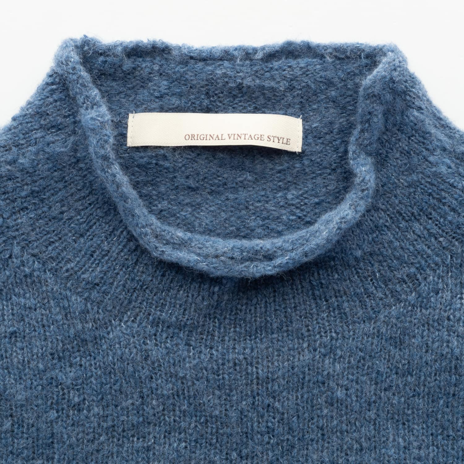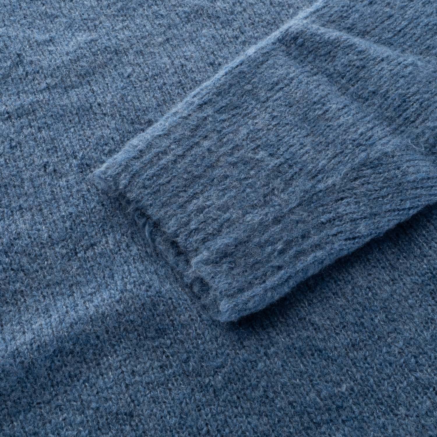 Classic sweater with a slight stand-up collar from Original Vintage Style. This sweater stands out for its soft, fluffy feel and pleasantly voluminous surface. The combination of high-quality virgin wool and polyamide provides not only pleasant warmth but also good shape retention. The subtle texture in the mottled “Azzurro” color makes it a versatile essential for the cool season.