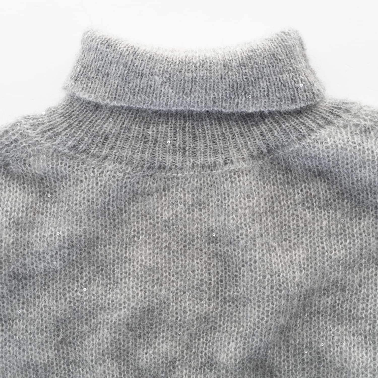 Luxurious oversized roll-neck sweater by Liviana Conti. This sweater impresses with its exceptionally soft mohair quality that feels gentle on the skin, as well as subtle glitter details that give the model an elegant touch. The generous oversized cut with roll neck provides a relaxed look with a modern silhouette.