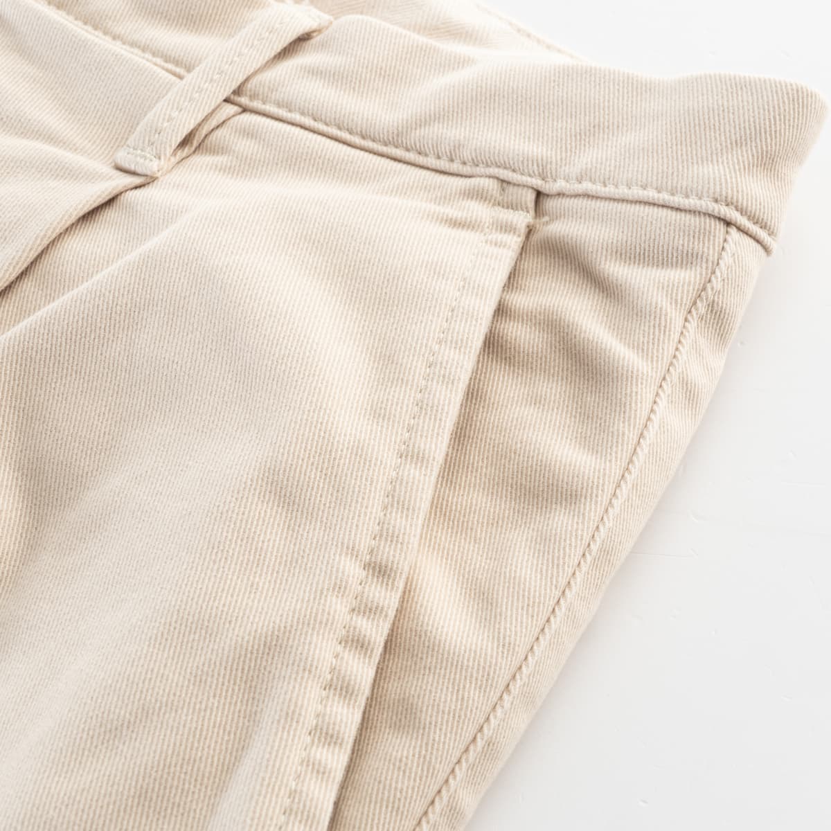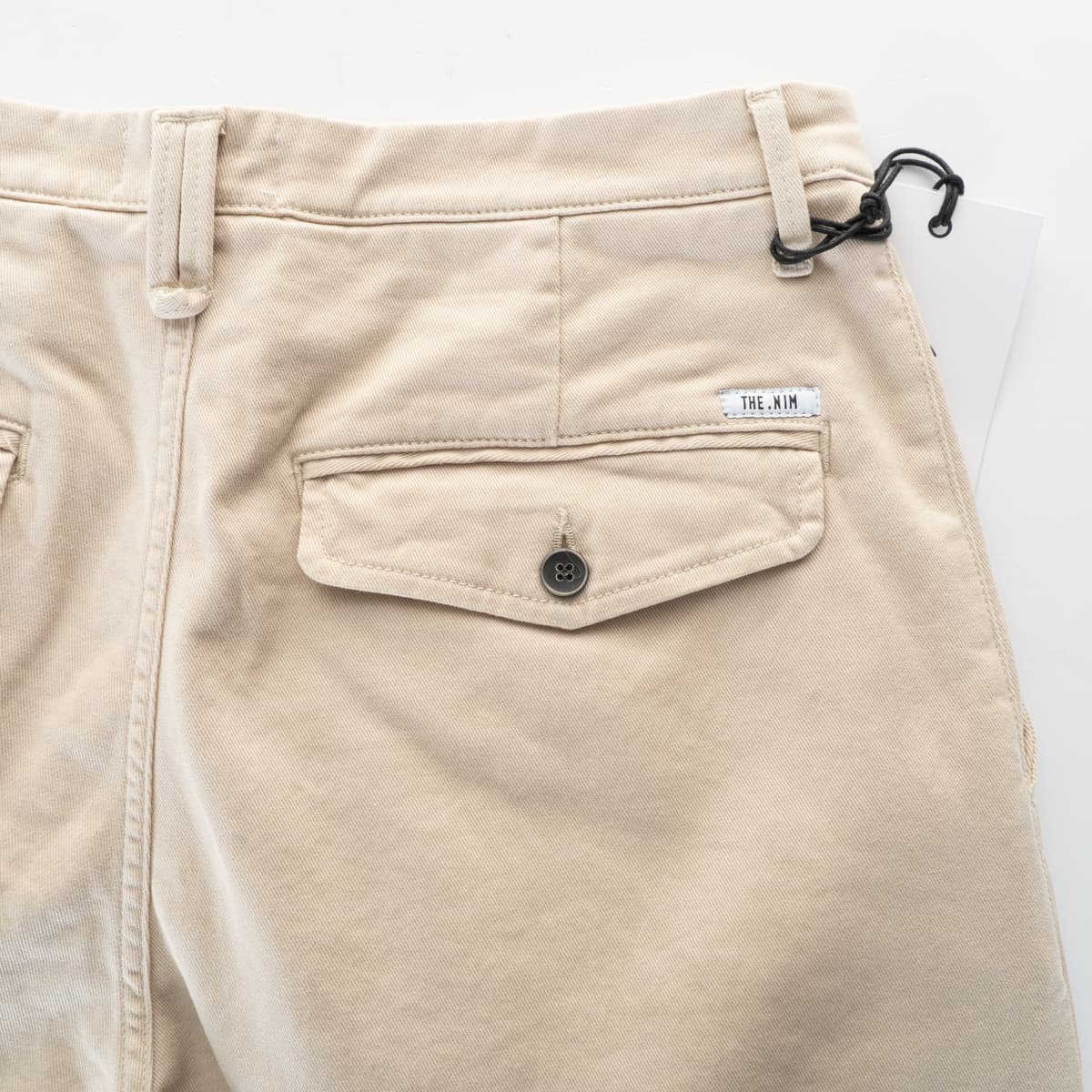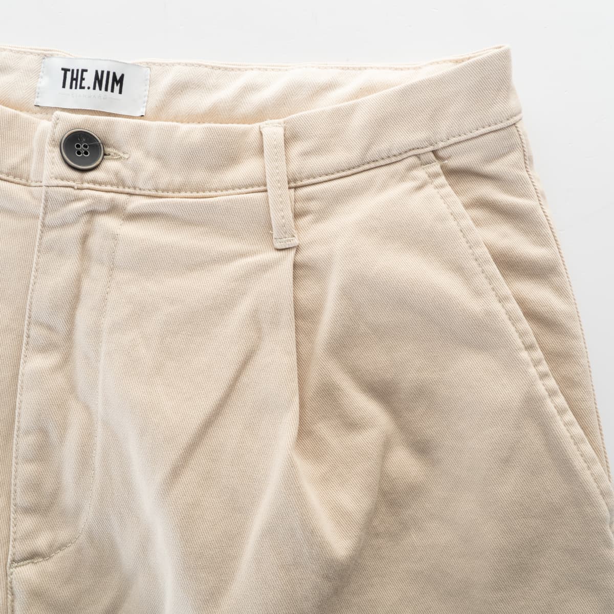 The chino by The.Nim Standard combines a classic silhouette with durable fabric. Made from 98 % cotton and 2 % elastane in a piece-dyed heavy twill with a brushed finish, it offers a soft hand feel, durability, and freedom of movement. The loose fit ensures a relaxed look, while pleats at the waistband and subtle details refine the style. Equipped with side slash pockets and flap back pockets with button closure, this chino is a versatile companion for everyday wear and leisure.