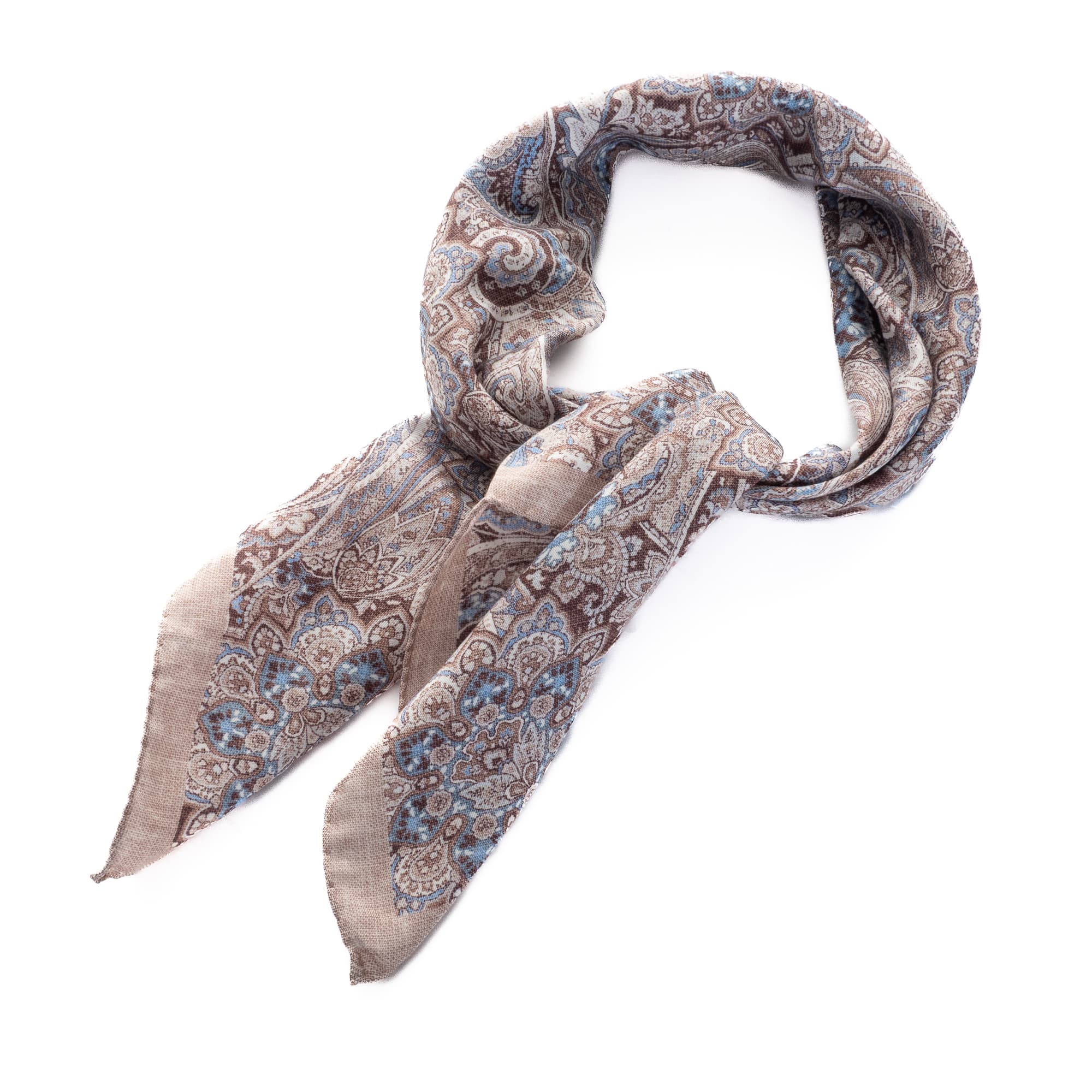 Bandana scarf made from a super soft silk-cotton blend with a floral pattern.