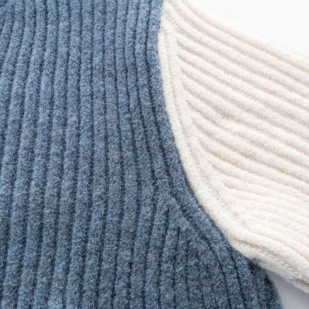 - Wide bouclé rib – textured outer surface with wide rib knit