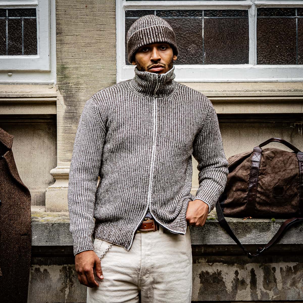 This zipped cardigan by Phil Petter impresses with its distinctive two-tone look and special knit structure. Made in Austria, it combines modern design with functional comfort. The so-called “Royal Stitch” is based on a two-tone moss stitch pattern, created by blending soft fake fur yarn with a smoother contrast yarn. This results in a unique visual effect with depth and structure.