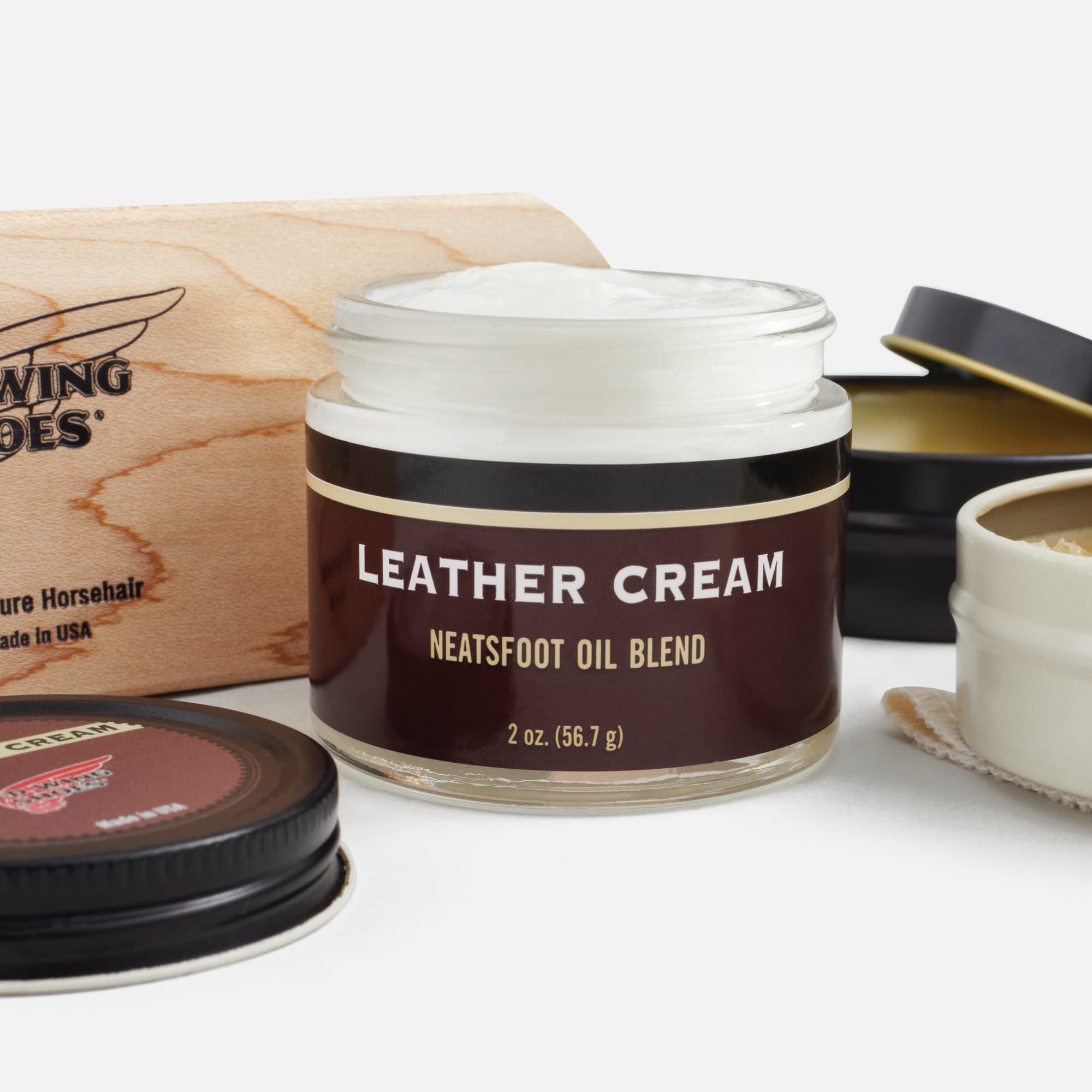 The neutral Red Wing Leather Cream is used to care for every type of leather. The formula based on claw oil gently moisturises without darkening the leather and gives the shoe a polished shine.
