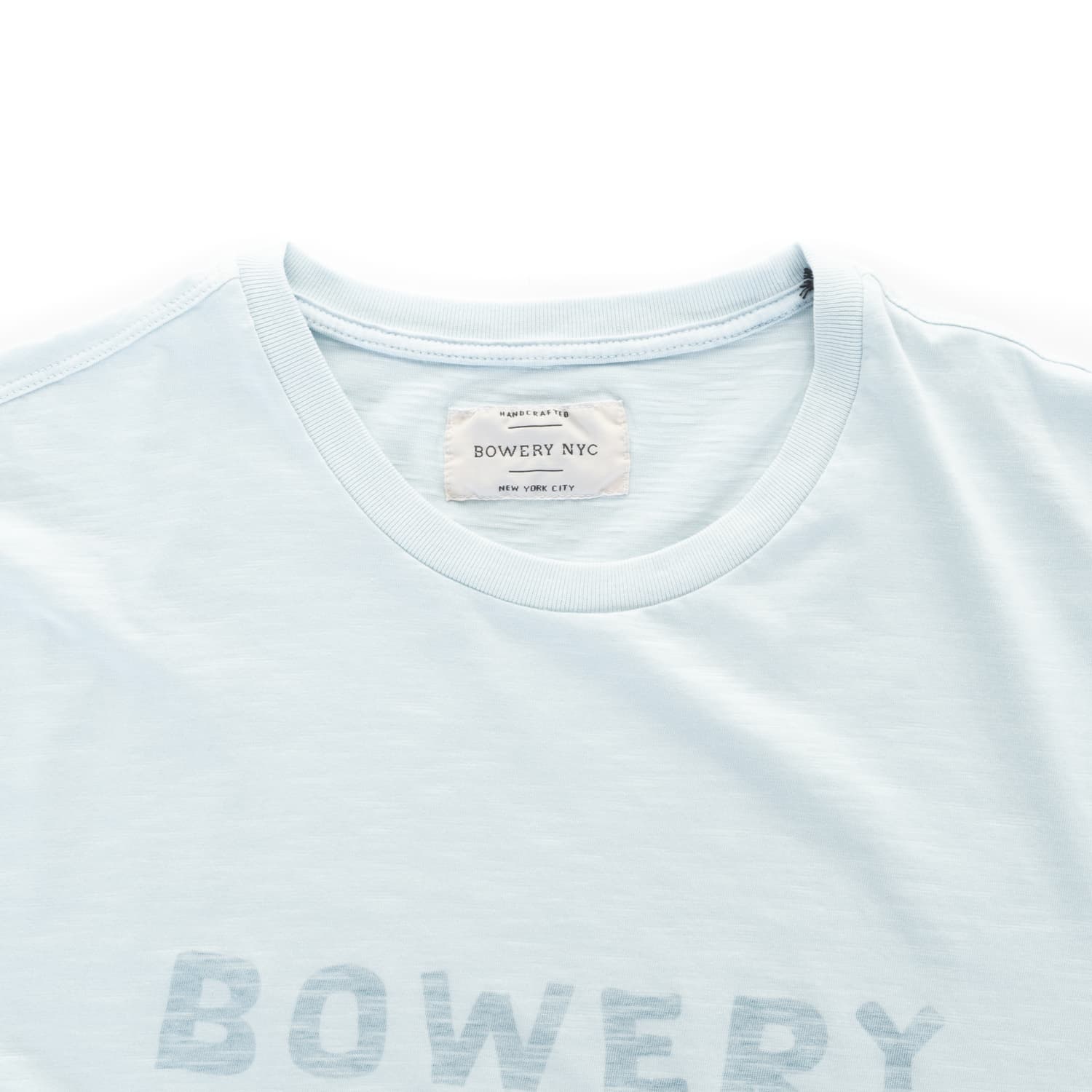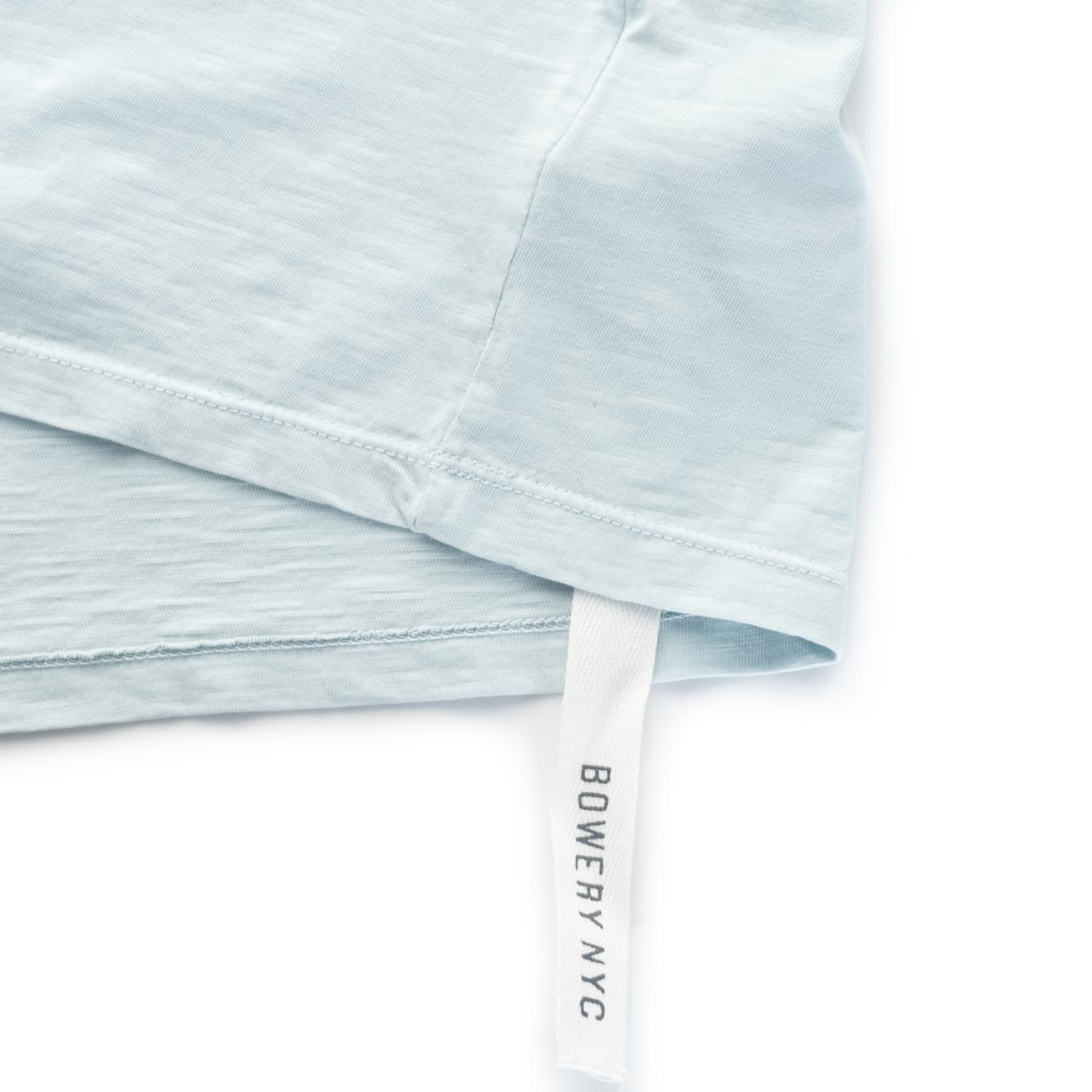 - Subtle Bowery NYC label at left hem