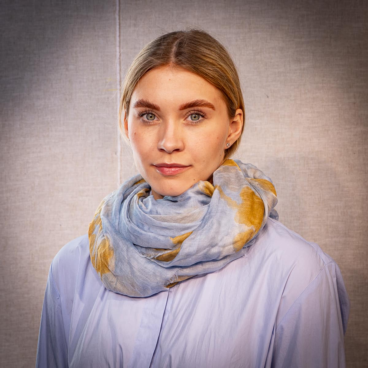 This stylish scarf is made from modal and silk. The fabric is light and airy and perfect for warm summer evenings.