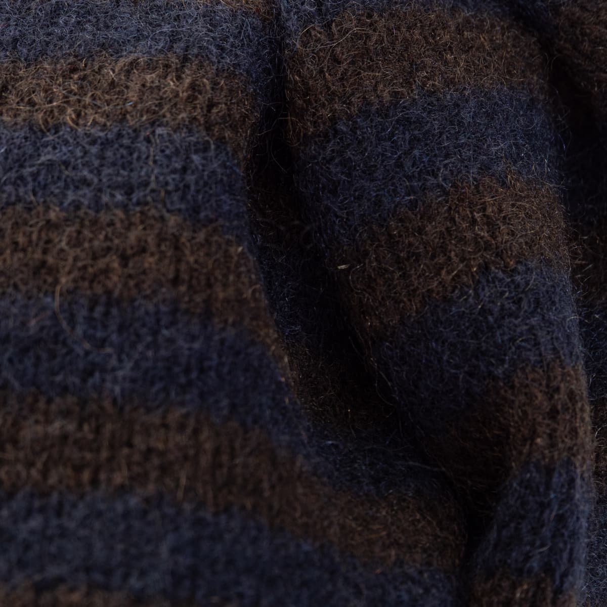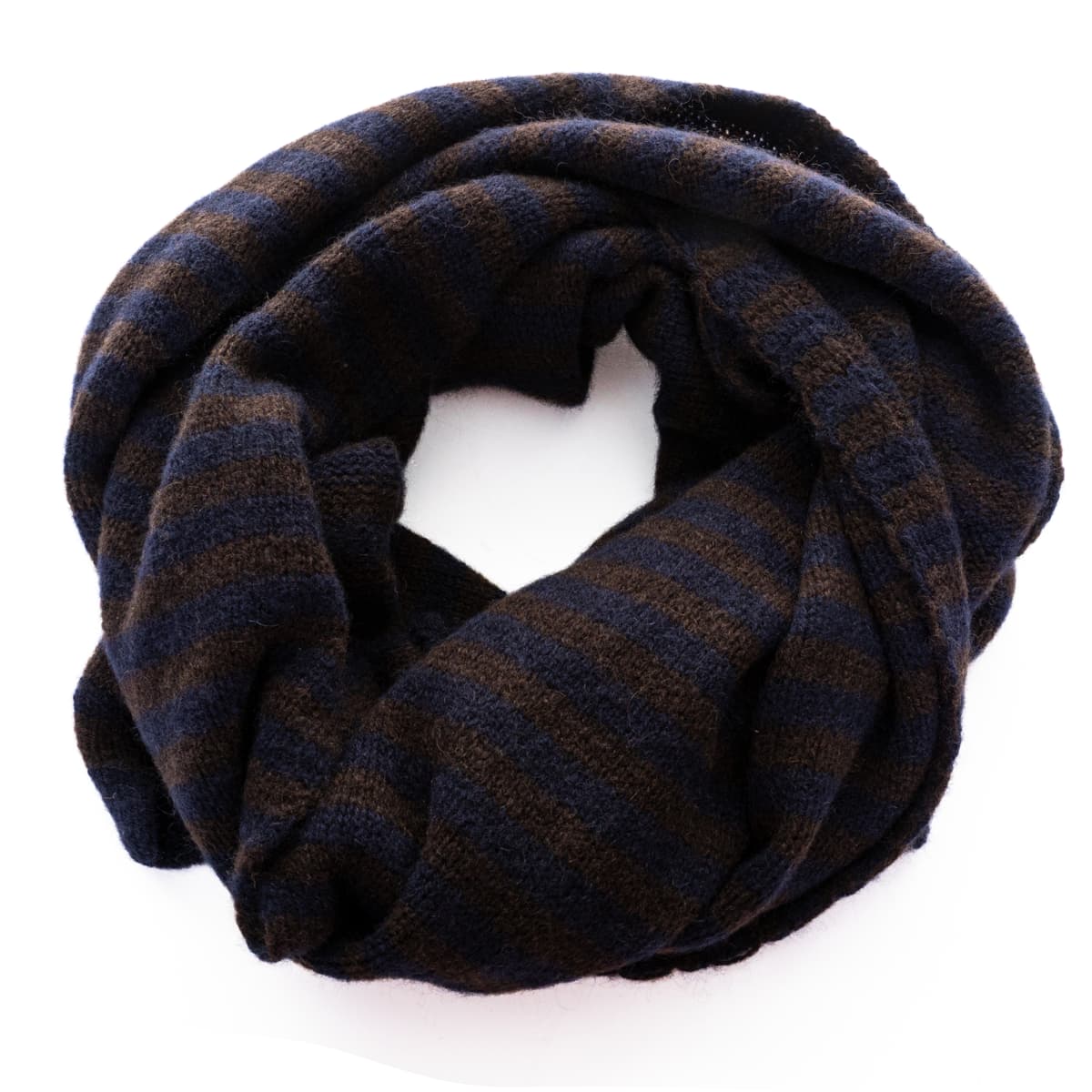 The “Frieda” scarf by Studio 1893 stands out with its classic striped pattern and the luxurious feel of pure cashmere. The fine knit texture ensures a soft and warm touch with a lightweight finish. Measuring 30 × 170 cm, it is easy to style in various ways – elegantly with a coat or casually over sweaters and jackets. The colour combinations in dark green/blue or navy/brown add timeless elegance with a modern twist.