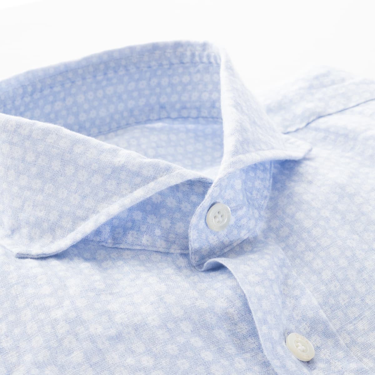 Until the 1950s, traditional shirt making used soft collar inserts that were not glued to the outer fabric. This original manufacturing technique inspired DU4 to do the same. The shirt collar nestles wonderfully softly against the neck without constricting. Looks good - and feels even better. In addition to aesthetic aspects, comfort and durability also play a role in the manufacturing process. For example, the buttons on a DU4 shirt with handle are sewn on and welded. The handle guarantees easy buttoning, while welding prevents the buttons from coming loose. All buttonholes are always embroidered with approx. 180 stitches and remain stable for a long time.