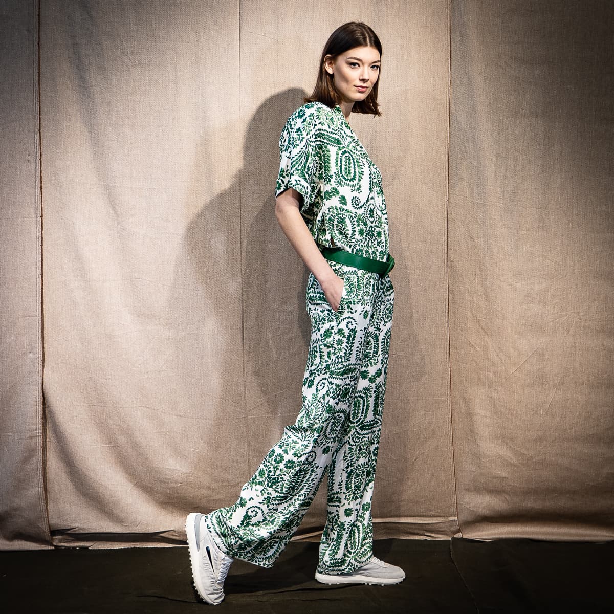 - Grey suede inserts